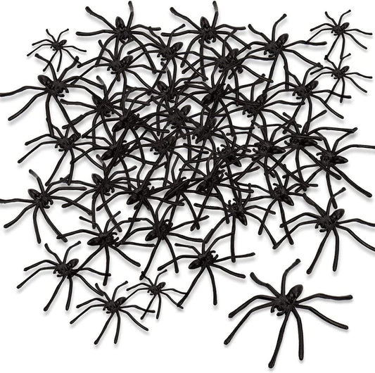 24 Black Plastic Halloween Spiders - Spooky & Scary, 5cm Each