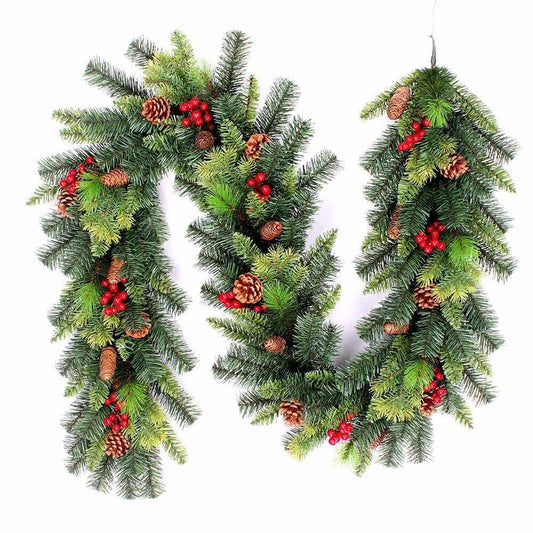 2m Elegant Pre-Lit Christmas Garland with Berries and Pine Cones