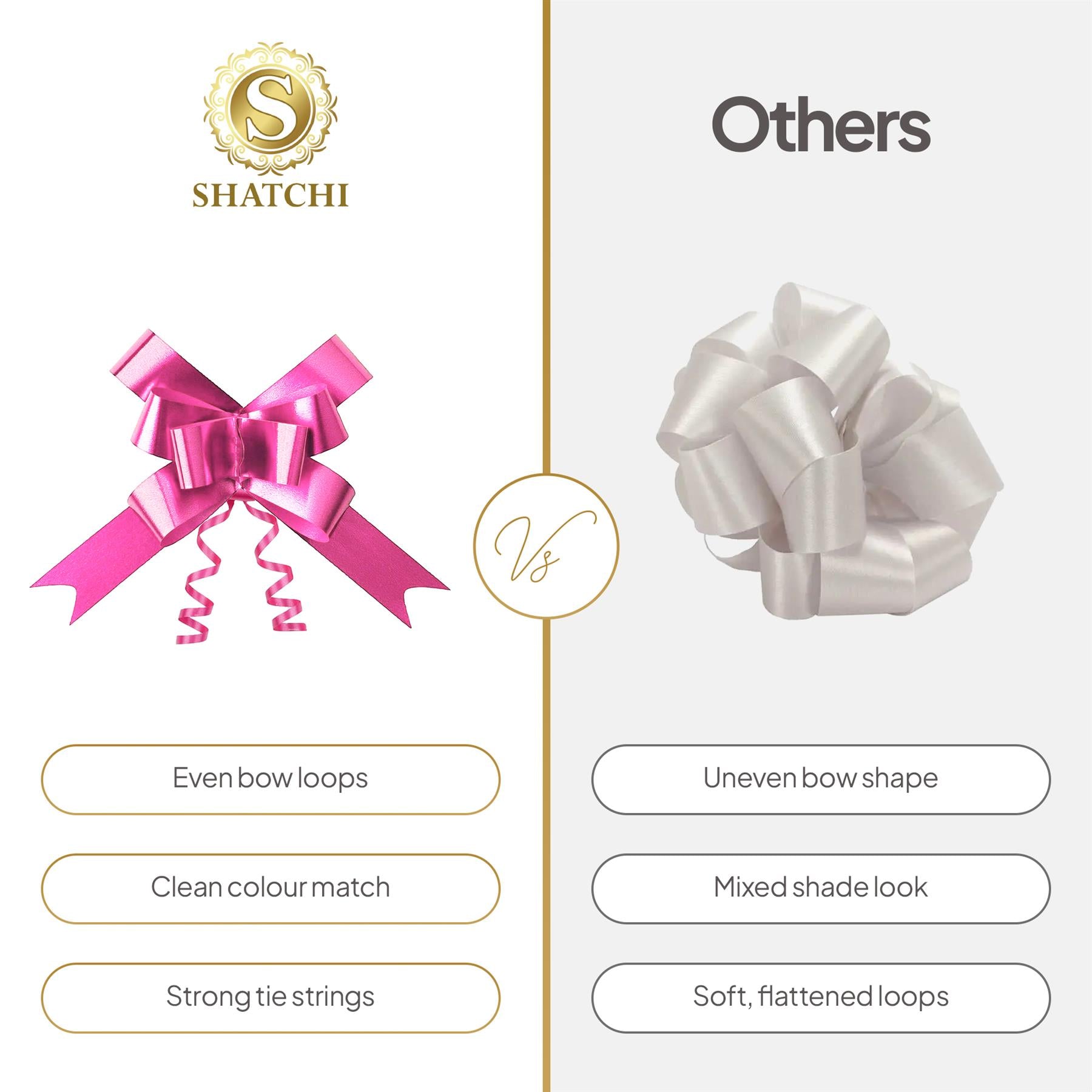 - 50mm quality large pull Bow Ribbon (approx 5" To 7" Wide when assembled) simply pull the inner ribbon cords and A beautiful bow is formed, tie off and attach with the extra long tie waterproof, anti-static, and wipe clean for use with fresh flowers and bouquets typical uses include creating bows and Decorating arrangements and gifts, flower bouquets and general craft work for wedding, anniversary, birthday.