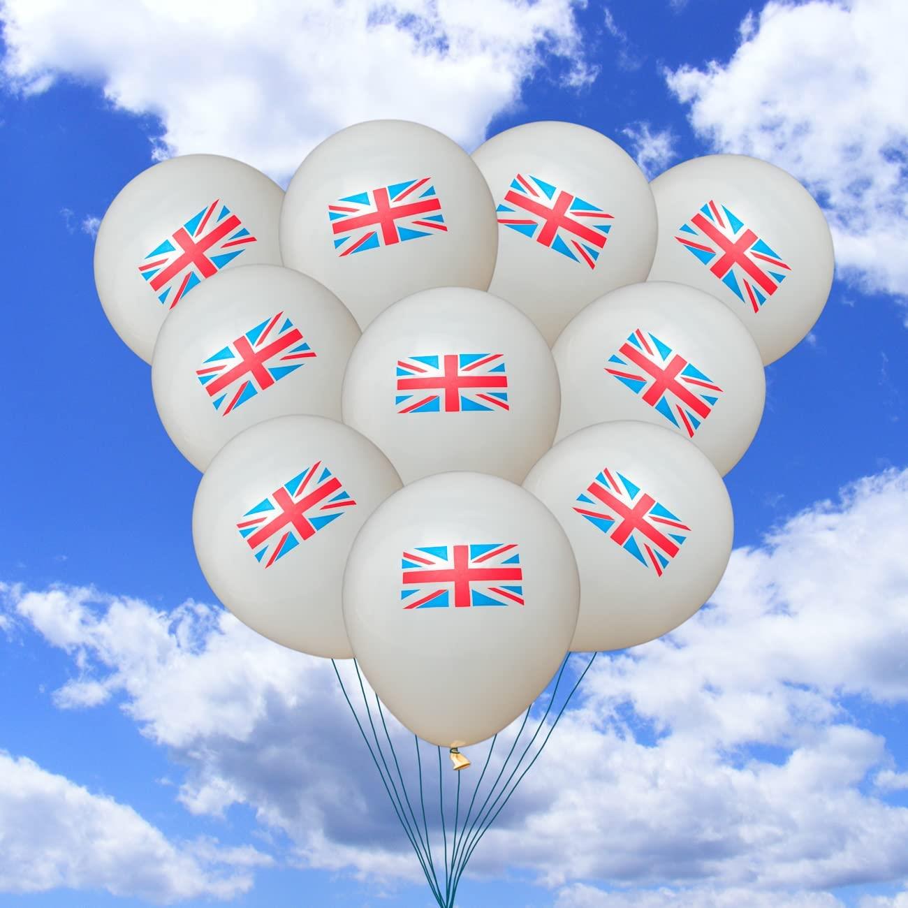 - High-quality Biodegradable latex material. Can be used to fill by Air or Helium Union Jack England National Flag Printed on White Balloon UK St George Festival Party Decorations.