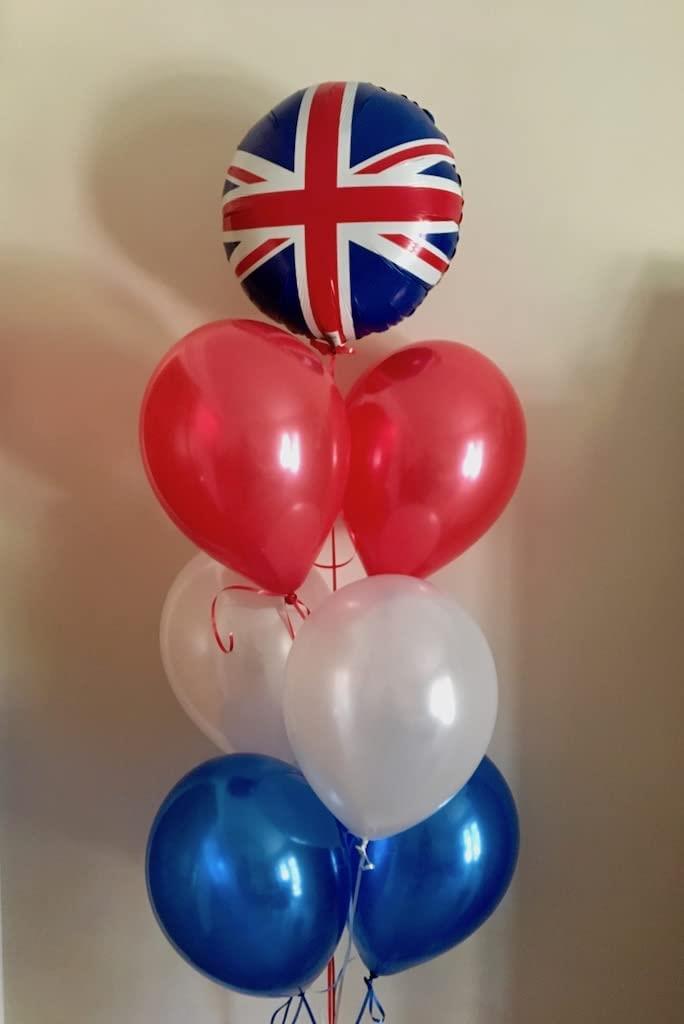 - Decoration of Union Jack Foil Balloon and Red White Blue Balloons for any Royal Event, National celebration, and many other Occasion.