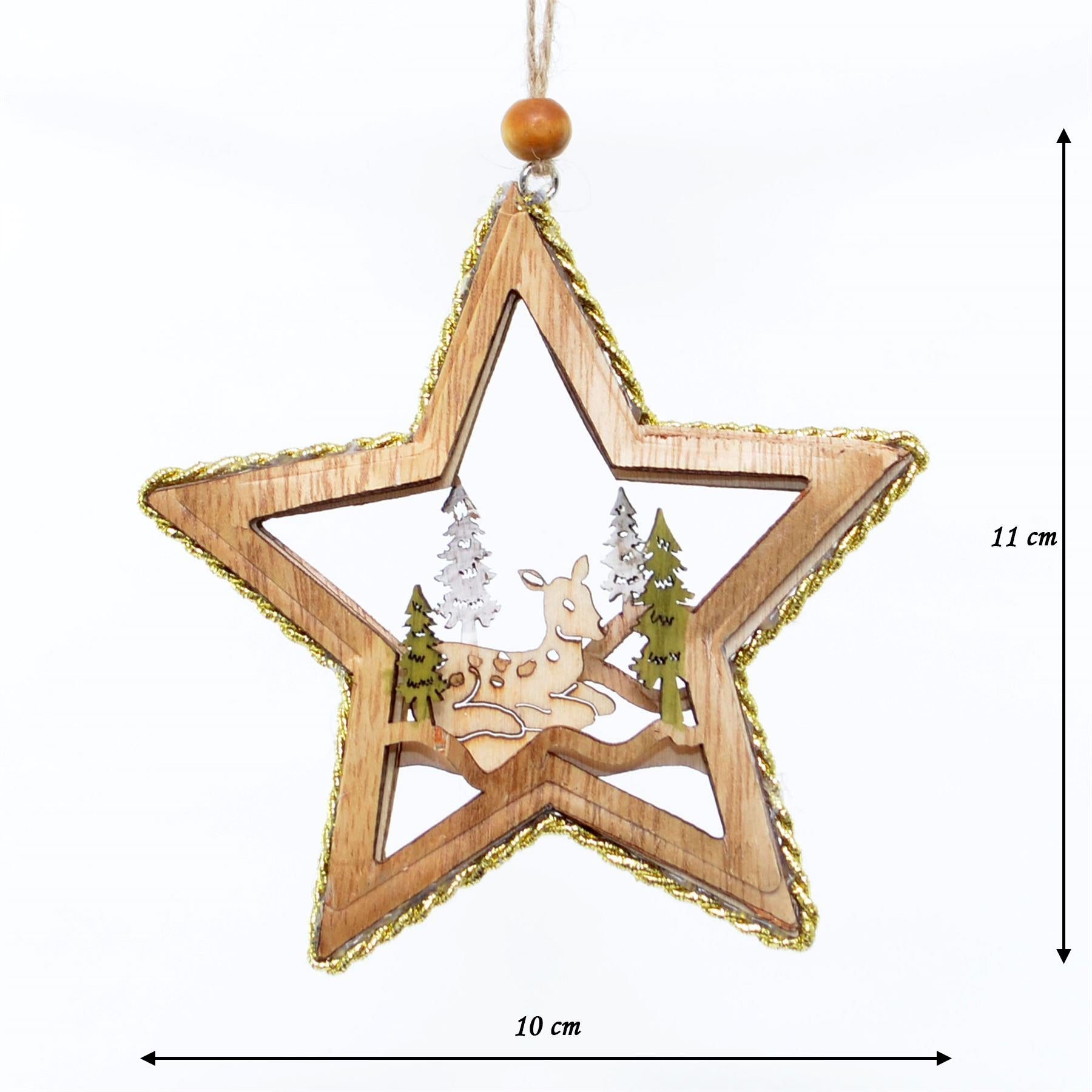 - Size: 10x11cm, Material: wooden, Order Quantity: 1 x Star Shape Wooden Hanging Ornament (Lying Deer)