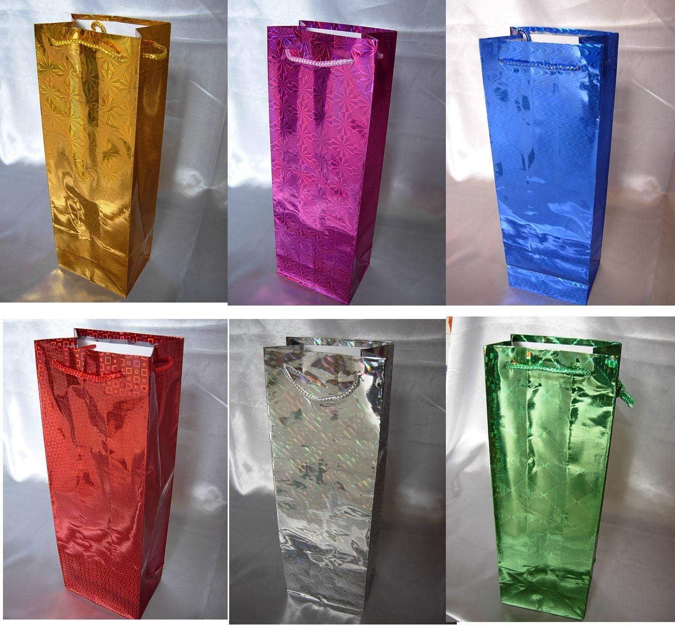- Assorted mix holographic gift bags for wine bottles. Ideal for Christmas, all occasions present. Eco-Friendly paper gift bags - Recyclable and photo-degradable.