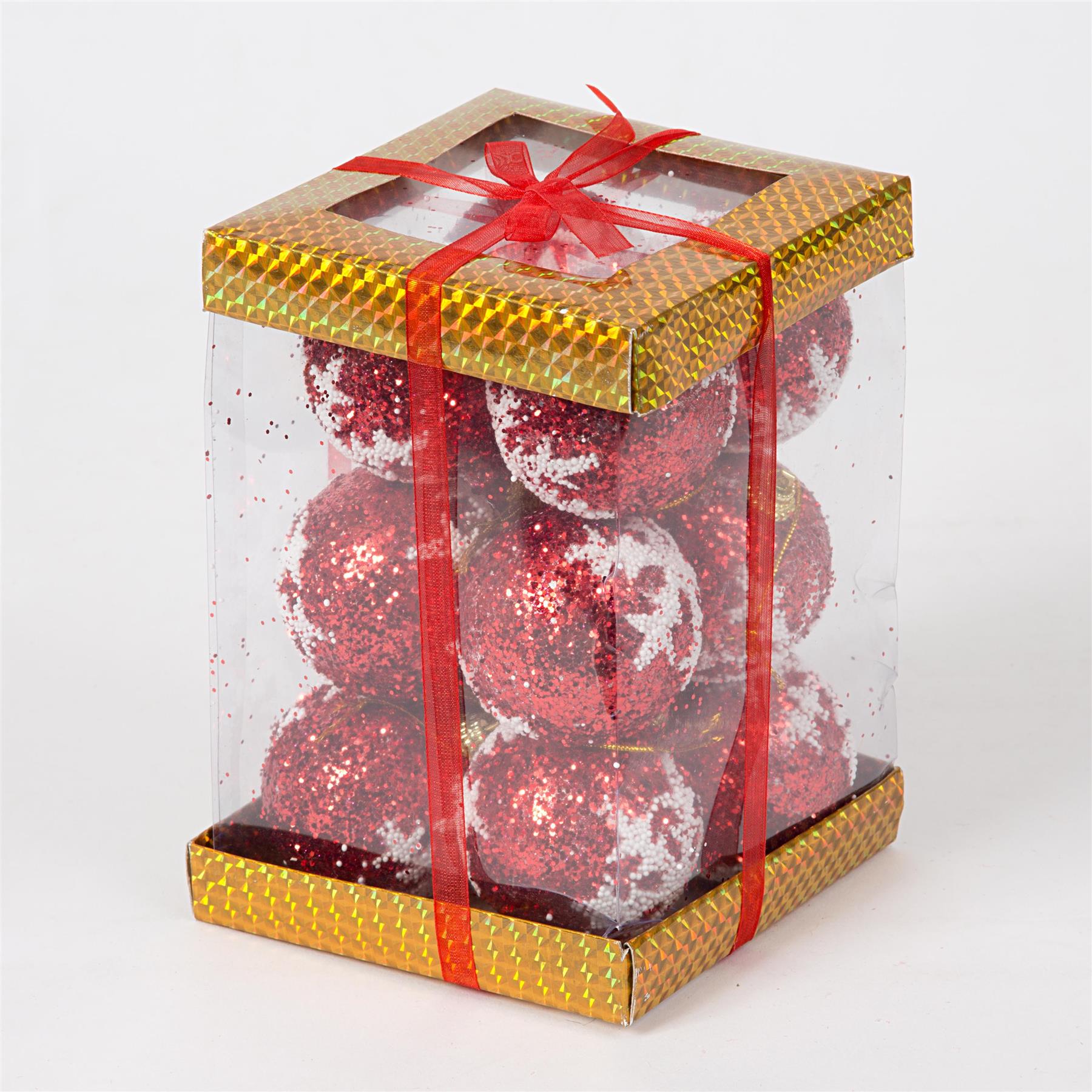 - 12 glittered Red Soft foam decorative Christmas baubles.