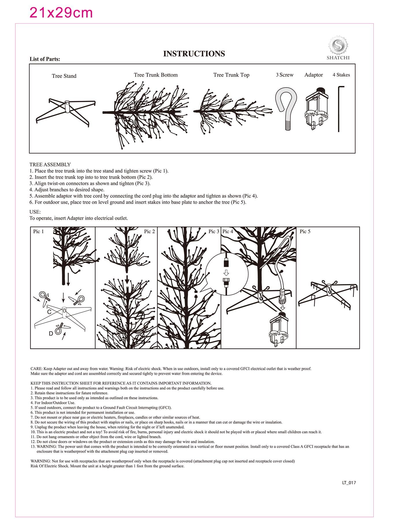 - Each tree stands on a sturdy stand that comes in the box. Home assembly is required. Keep the transformer plugged indoors at all times.