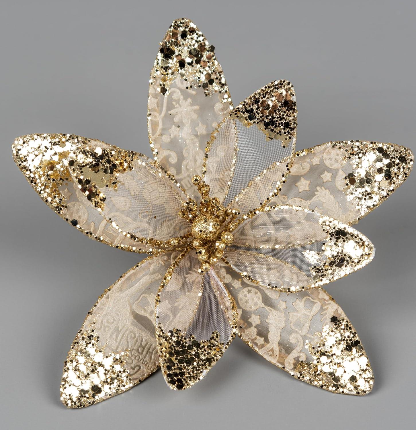 - Large deluxe quality velour glitter flower ornaments are inspired by the real poinsettia with rich details.