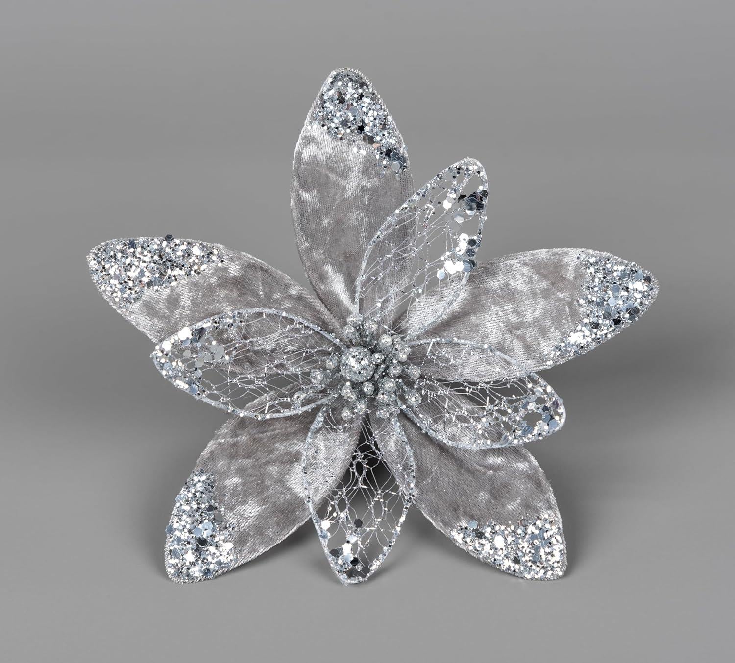 20cm Silver Poinsettia Flower