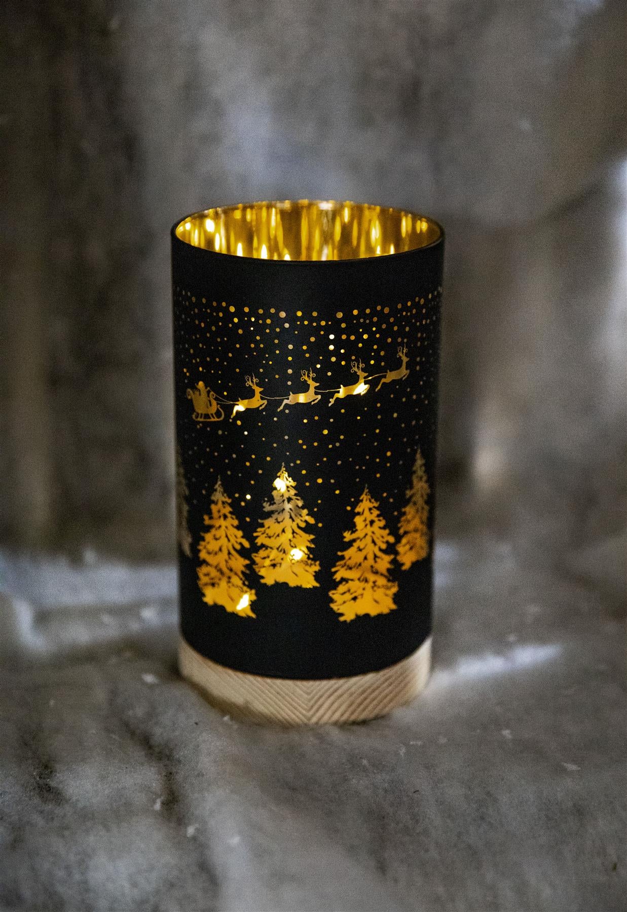 23cm Christmas Decorated Vase Table Santa Sleigh Scene Black