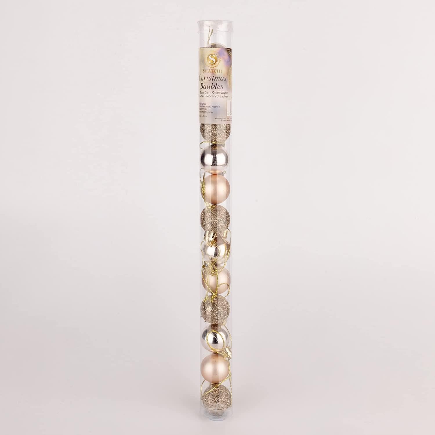 24 Champagne Baubles 3cm PVC Set