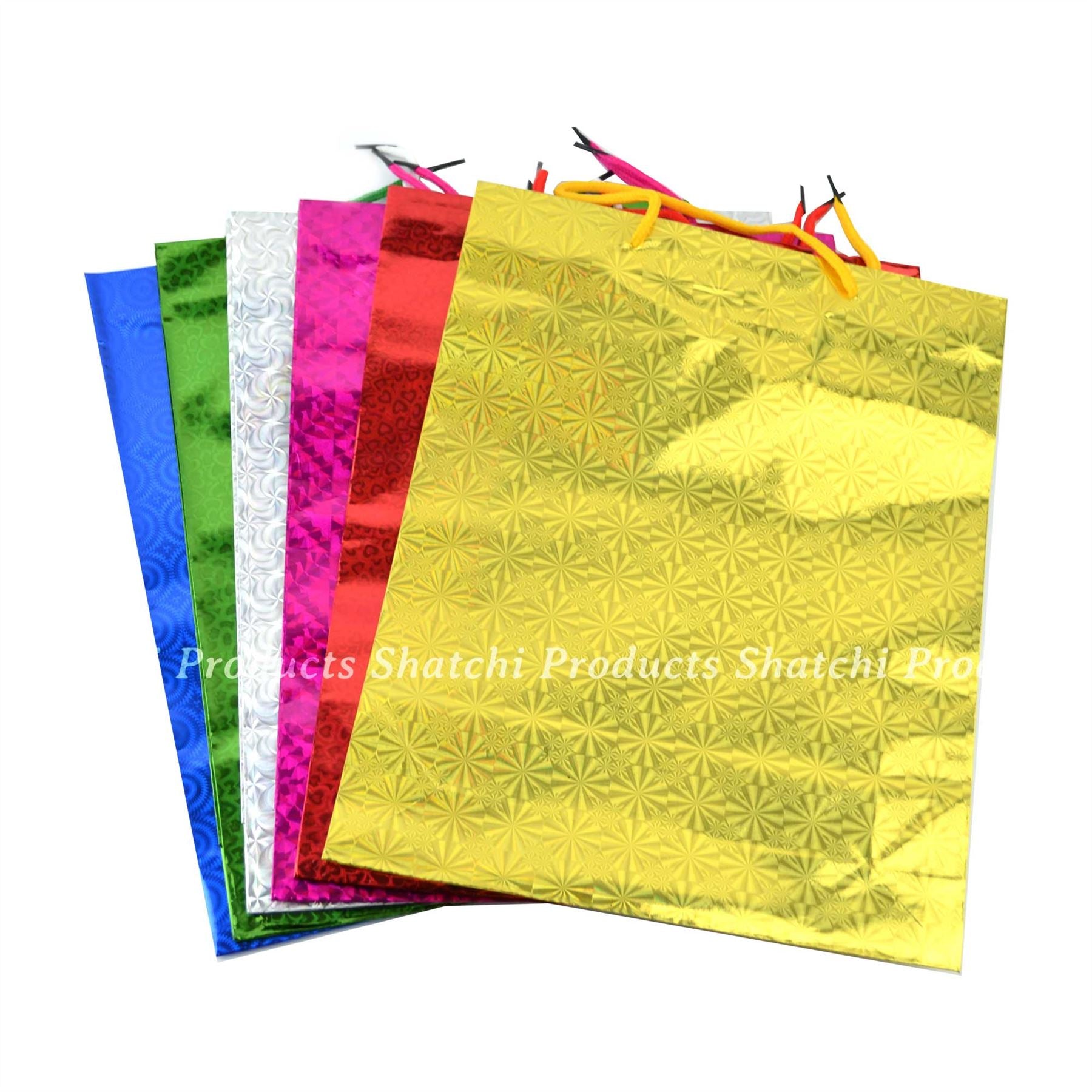 - 100 small-size Assorted Holographic gift bags. Ideal for Christmas, all occasions present. Paper gift bags - recyclable and photo-degradable.