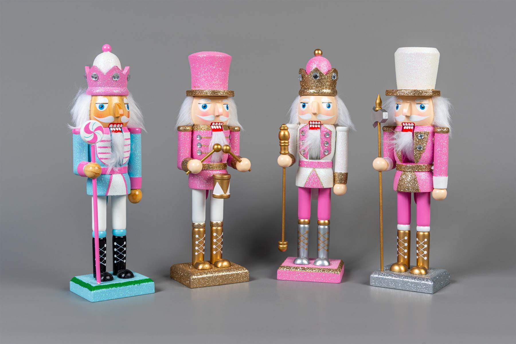 25cm Pink Wooden Nutcrackers, 4pcs Set