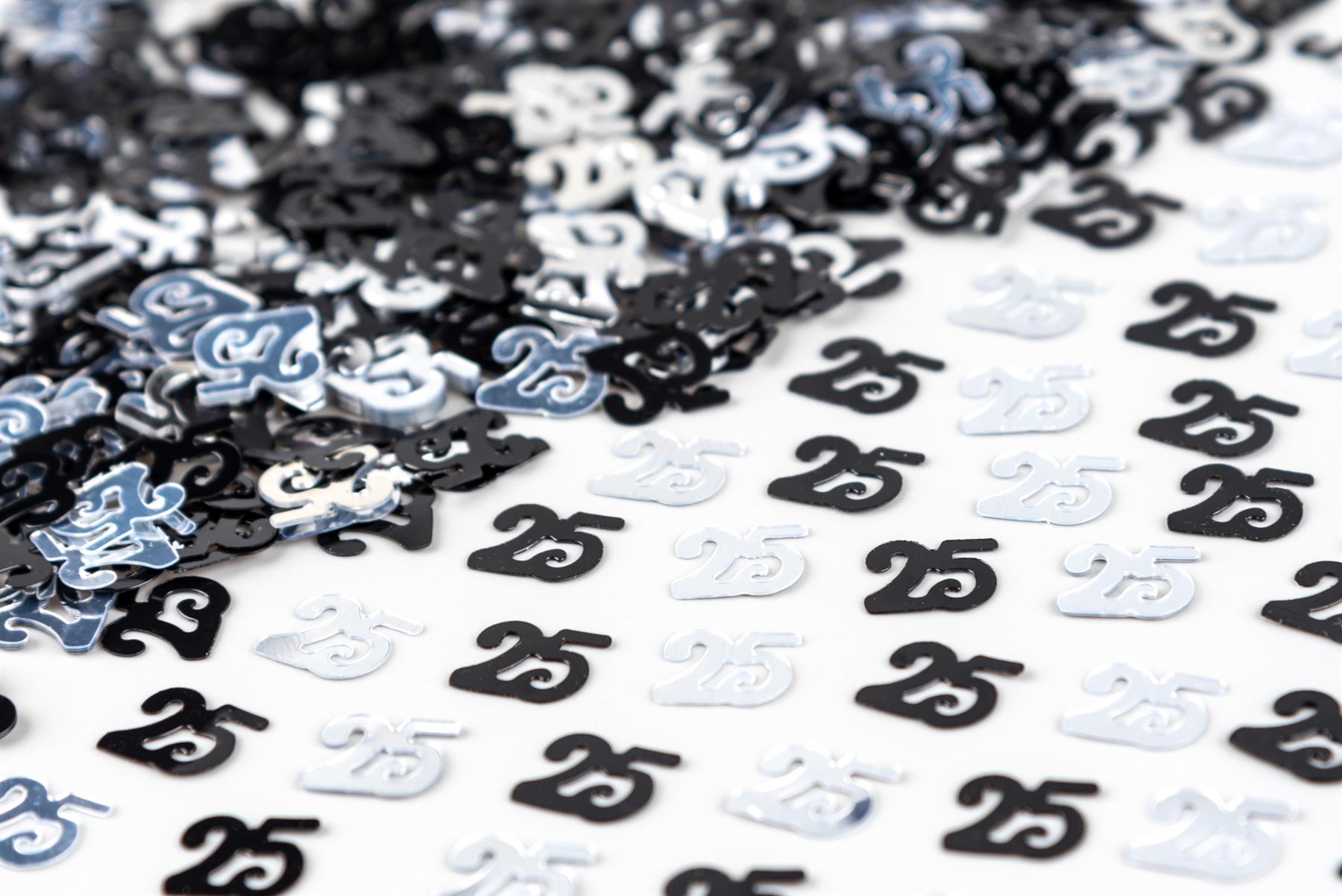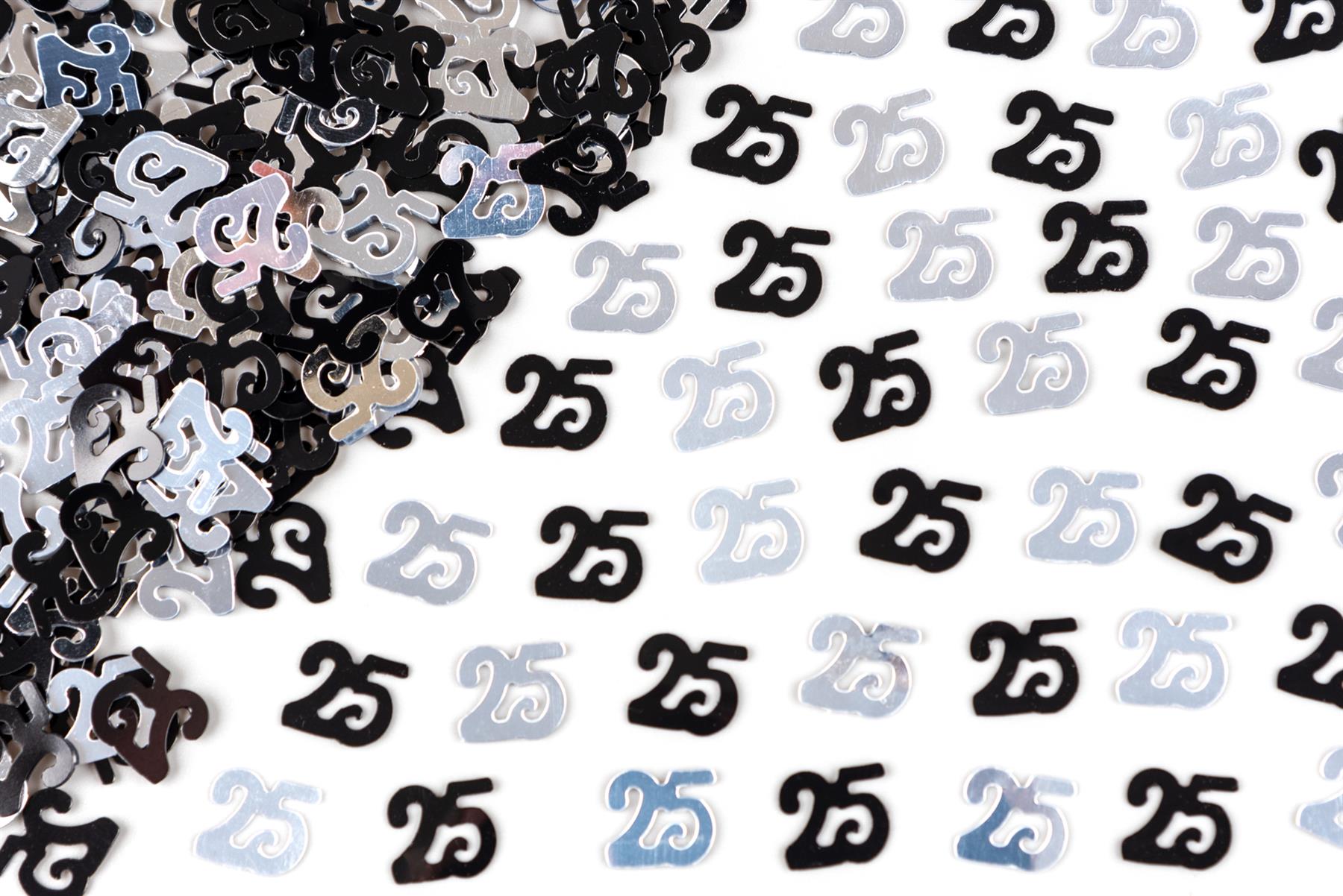25th Birthday Confetti in Black & Silver, 14g, 4 Packs