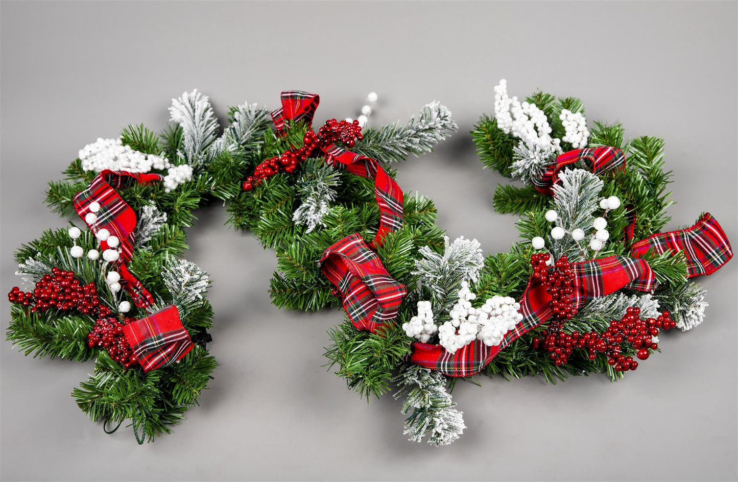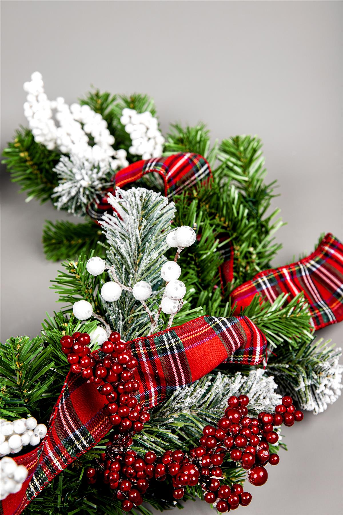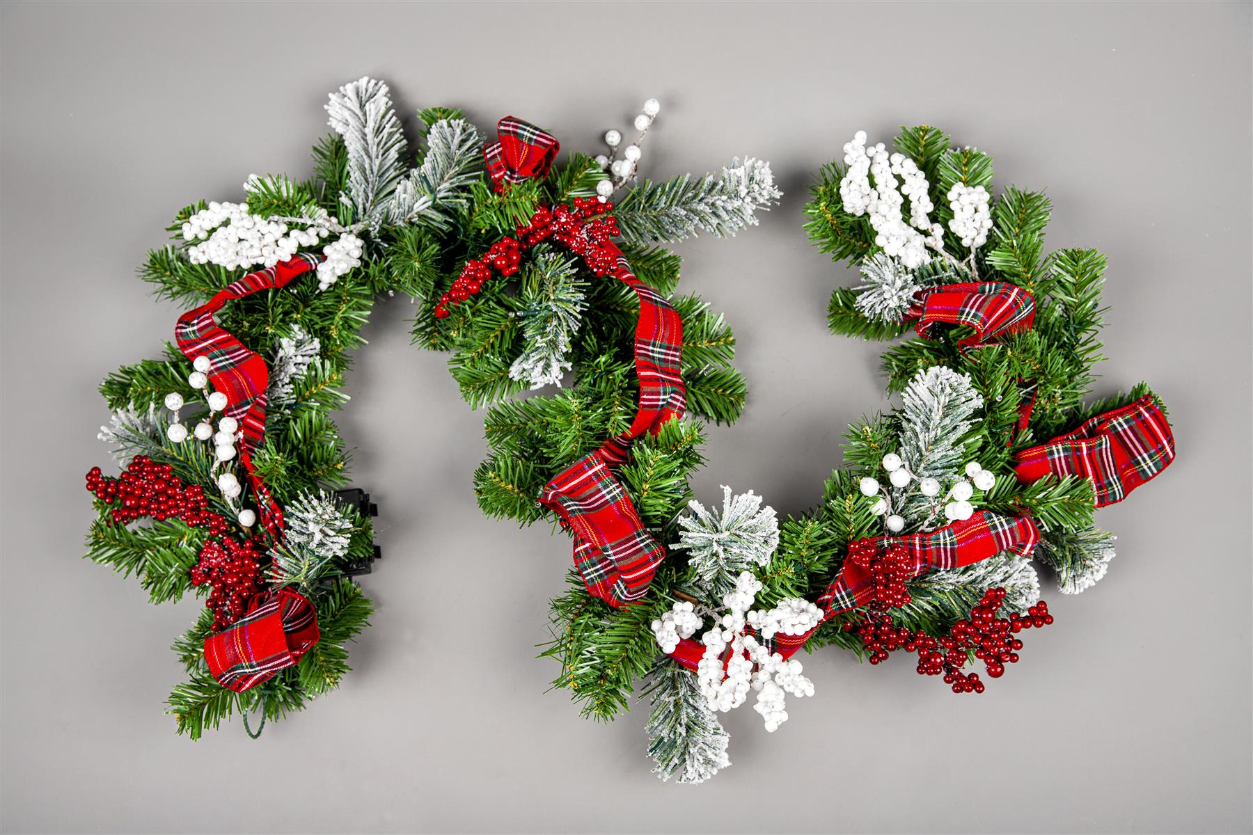2m Pre-Lit Frosted/Tartan Ribbon Garland with 50 WW LEDs