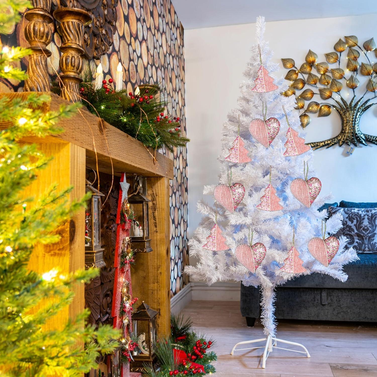 - Whether you're a fan of traditional holiday decor or simply want to add a touch of luxury to your Christmas tree, our Pink Glitter Heart Shape Christmas Tree Hanging Decoration is a perfect choice.
