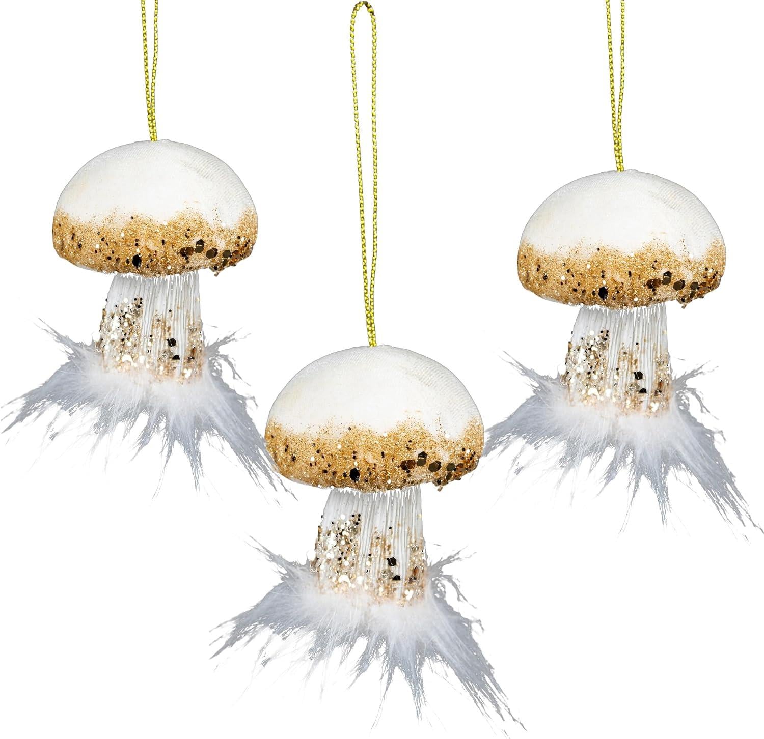 - Crafted with meticulous attention to detail, this mushroom ornament measures 6x7cm and features a lovely white color that's perfect for creating a soft and dreamy atmosphere. Its unique mushroom shape adds a touch of woodland charm to your holiday theme.
