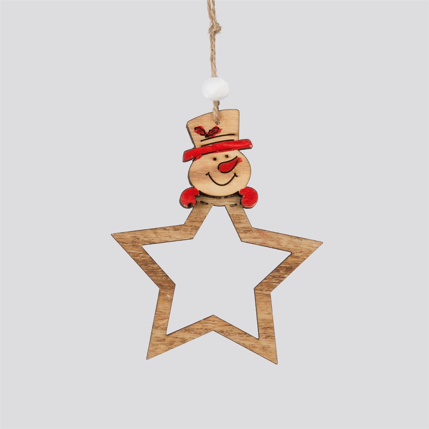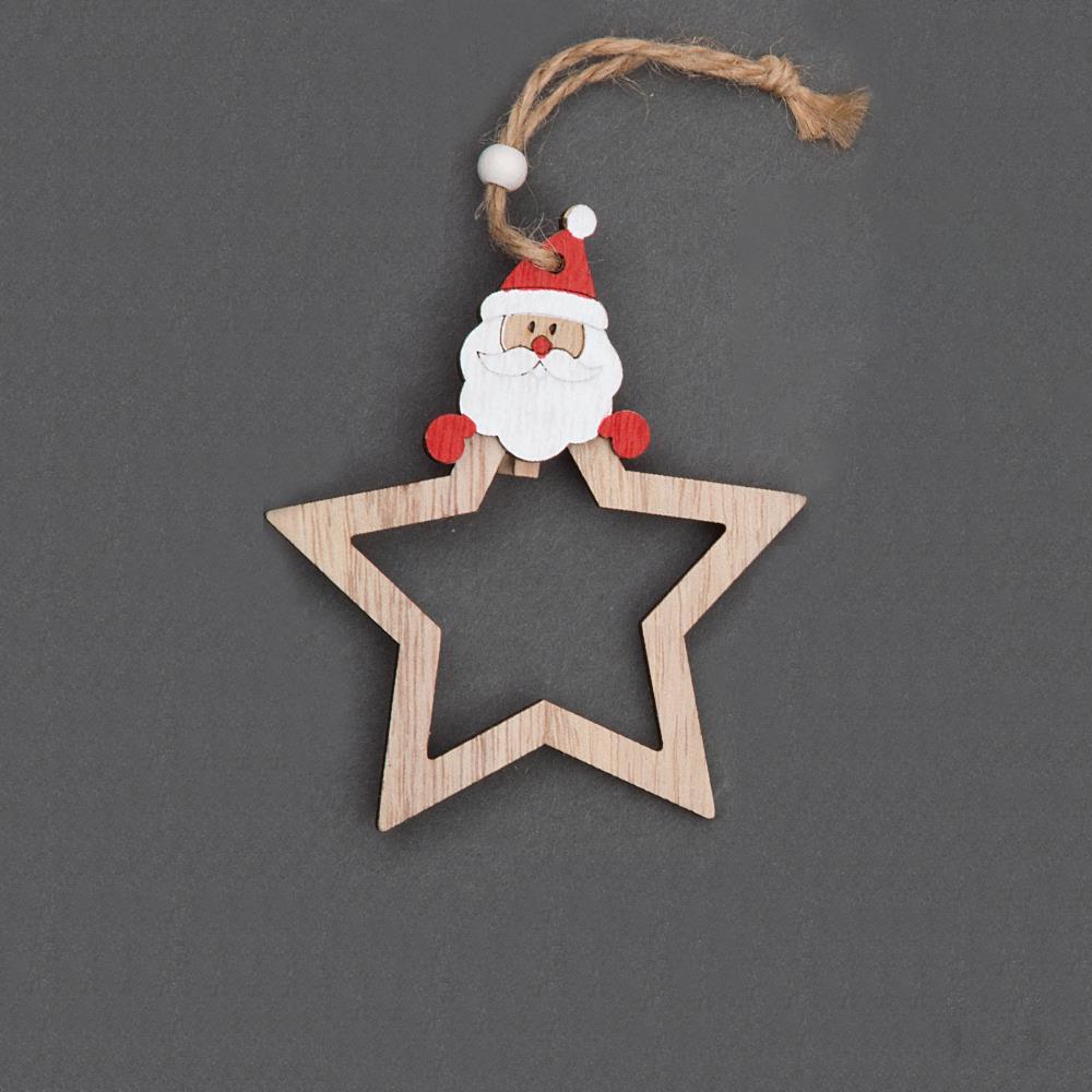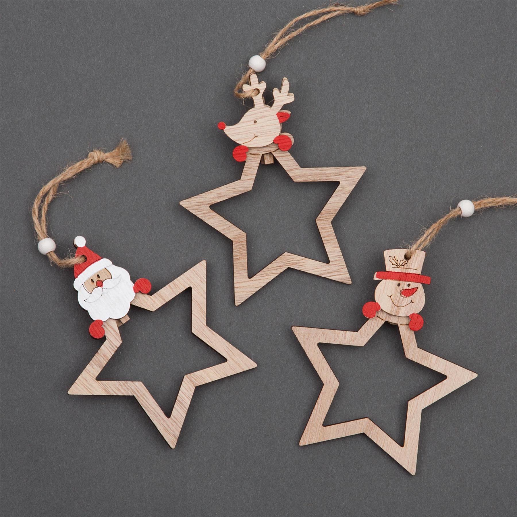 - It has a simple design and Twine strings attached to each piece which looks beautiful and shiny. Size: 9x7cm, Material: Wooden, Order Quantity: 1 set (Star shape 1 Santa, 1 Reindeer, 1 Snowman - Total 3 pcs included)