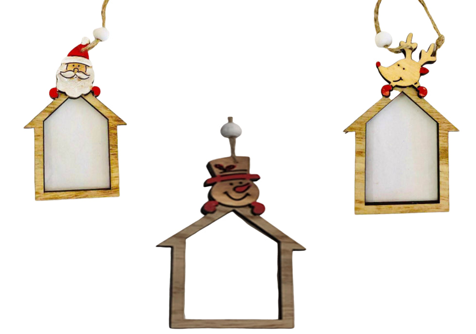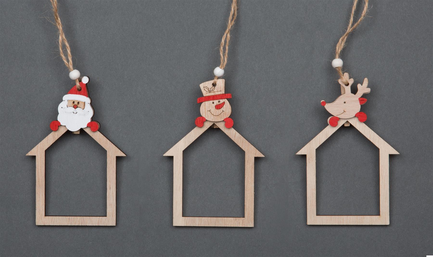 - It has a simple design and Twine strings attached in each piece which looks beautiful and shiny. Size: 9x8cm, Material: Wooden, Order Quantity: 1 set (1 Santa, 1 Reindeer, 1 Snowman - Total 3 pcs included)