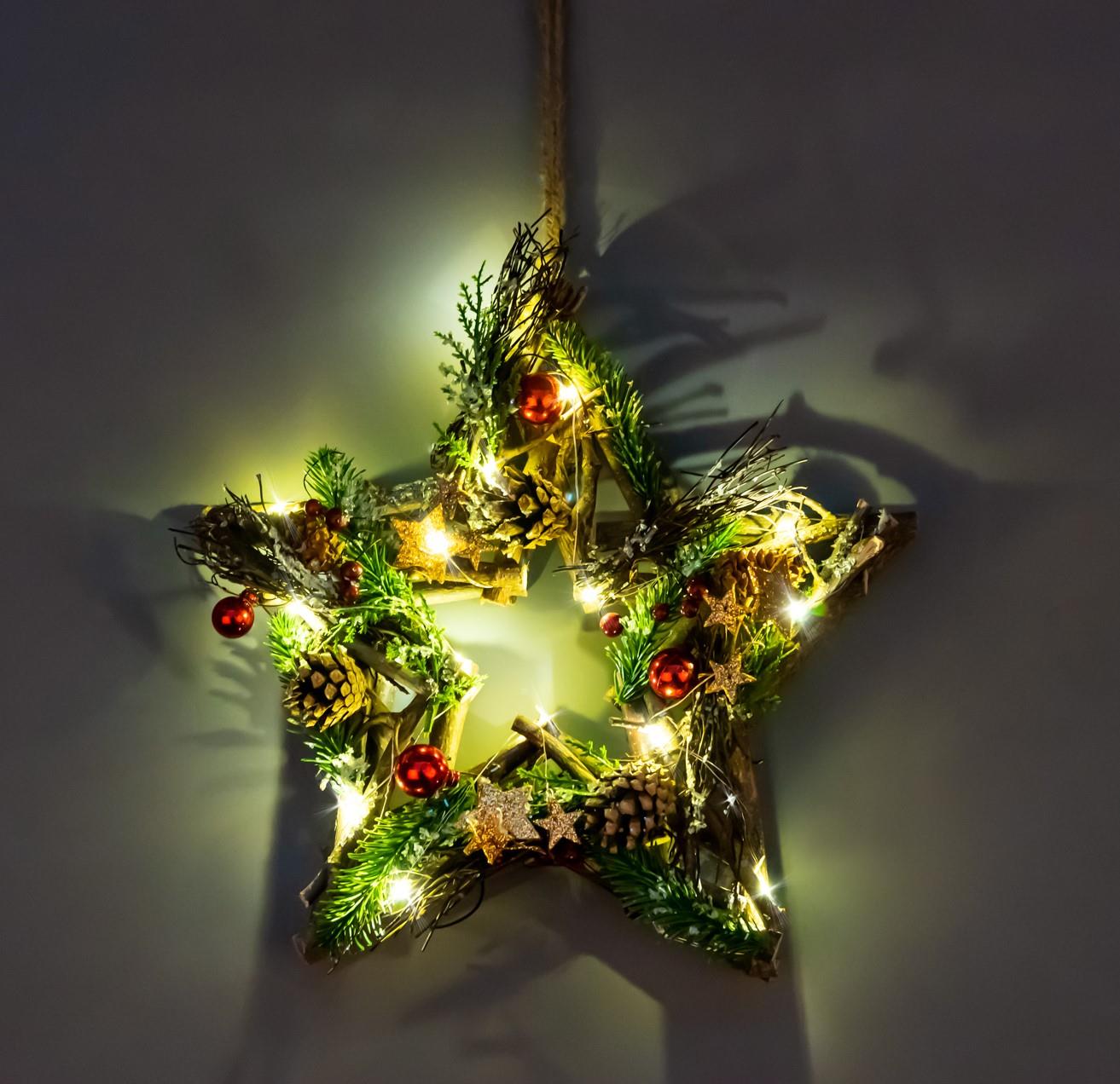 - Versatile Decor: Whether adorning your front door, hanging above the fireplace, or gracing your dining table as a centerpiece, this star-shaped wreath effortlessly elevates the atmosphere and spreads holiday cheer throughout your home.