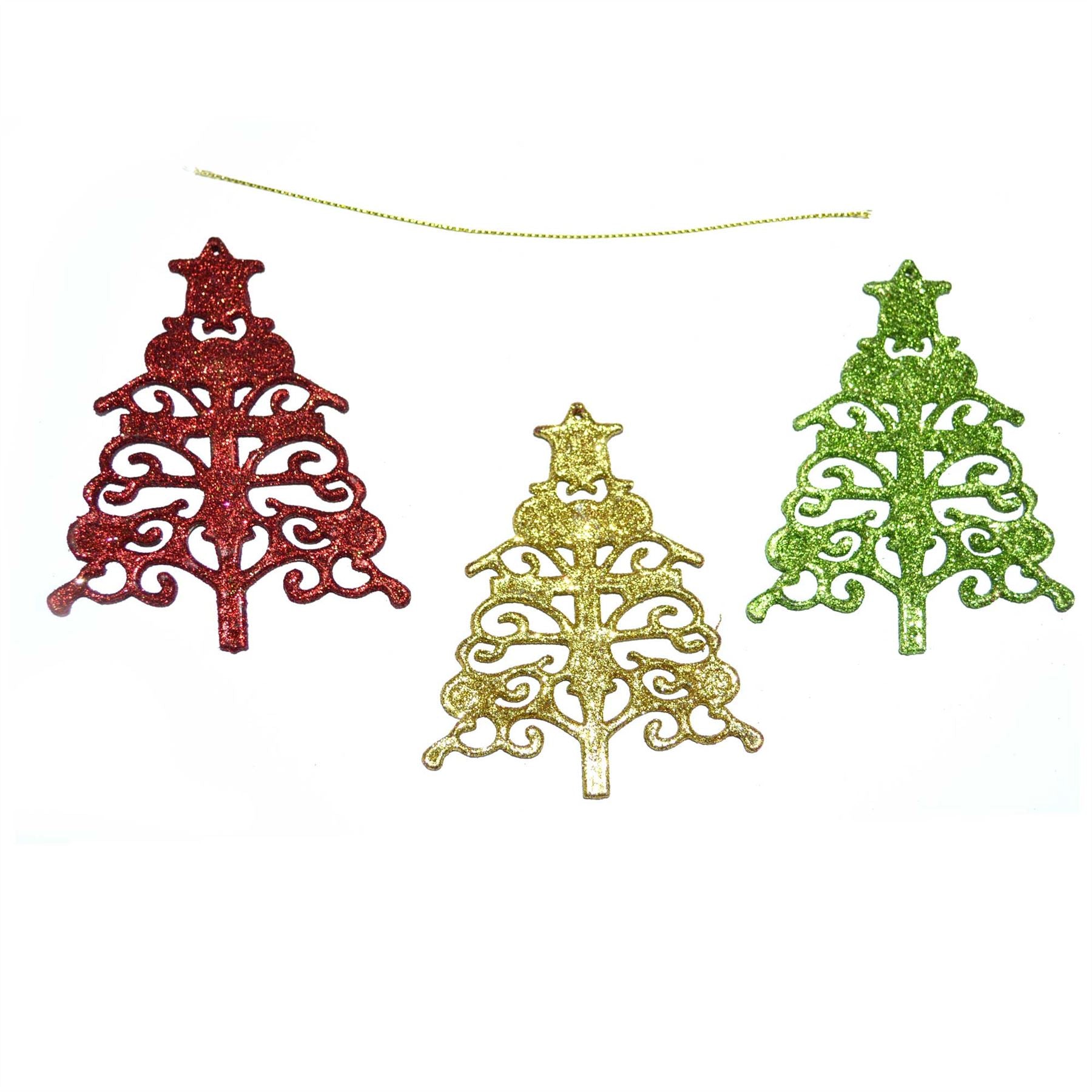 - Each of these fantastic tree decorations is designed in the shape of a Christmas tree and decorated with glitter perfect for Christmas and fantastic for any seasonal celebration This spectacular Star will look great decorating the top of any Christmas tree.
