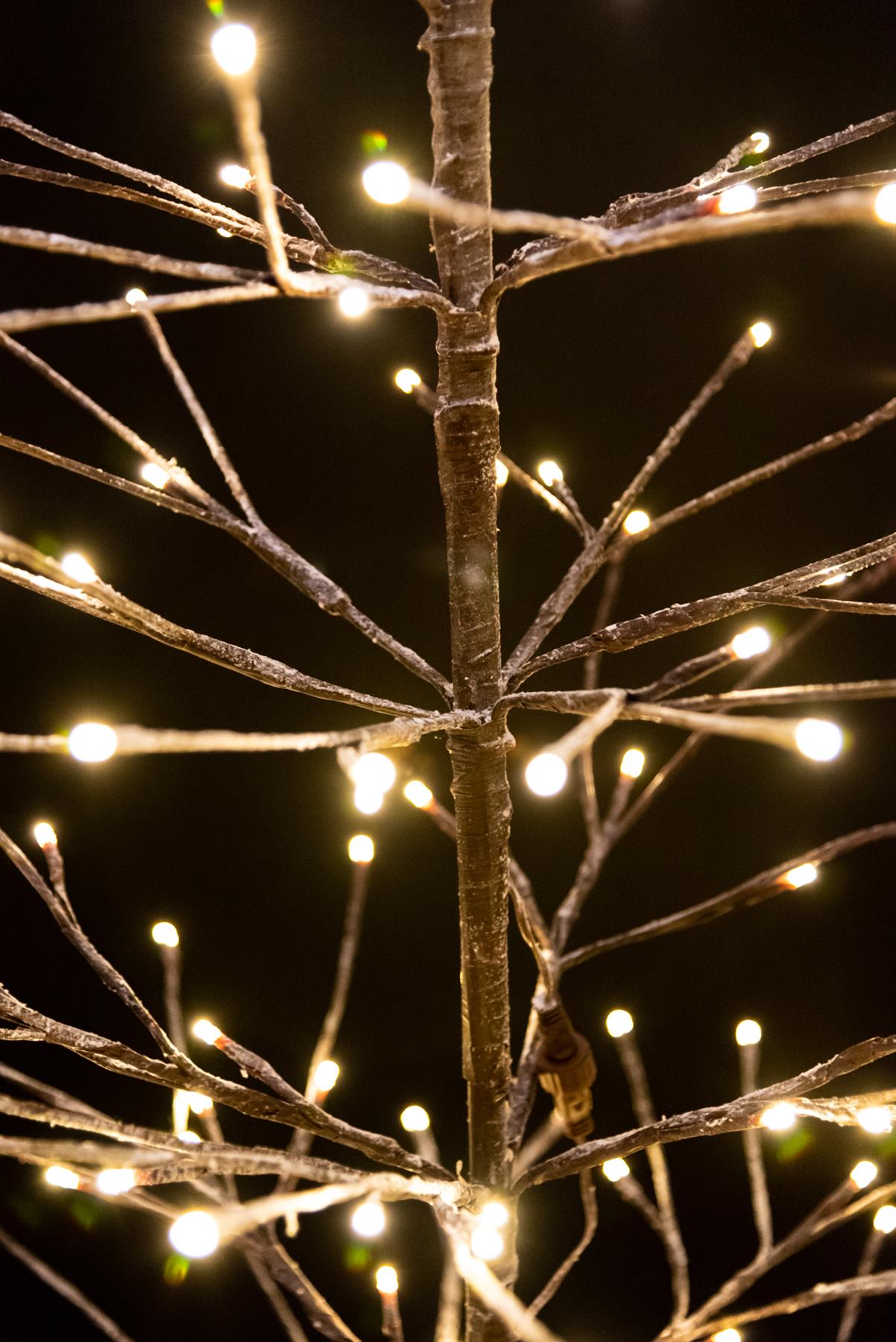 - This style of tree features a modern artificial twig design with cool white LED lights.