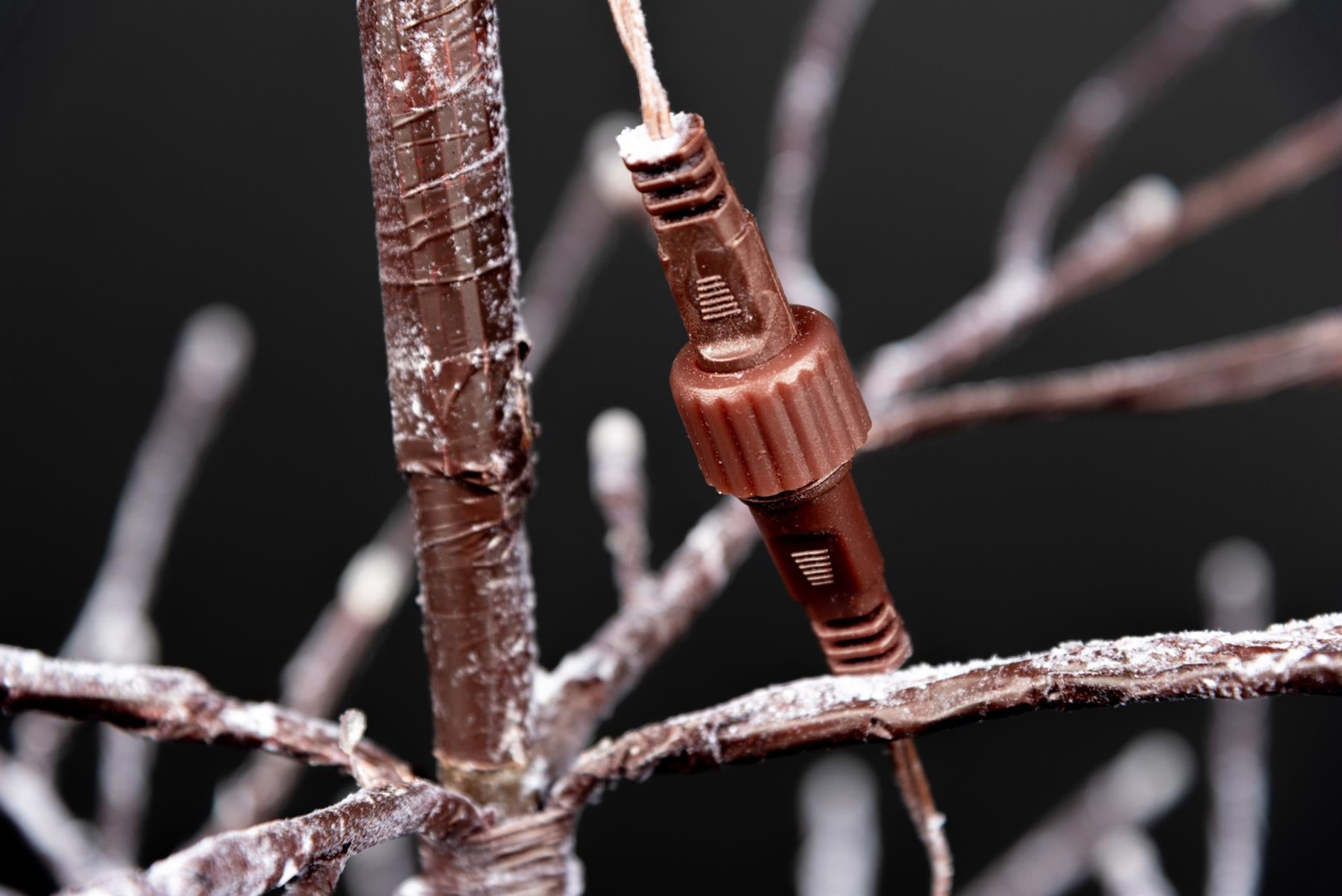 - Plug in and it will light up. Decorate your home & Garden for Christmas with our twig trees. Each tree stands on a Flat base.