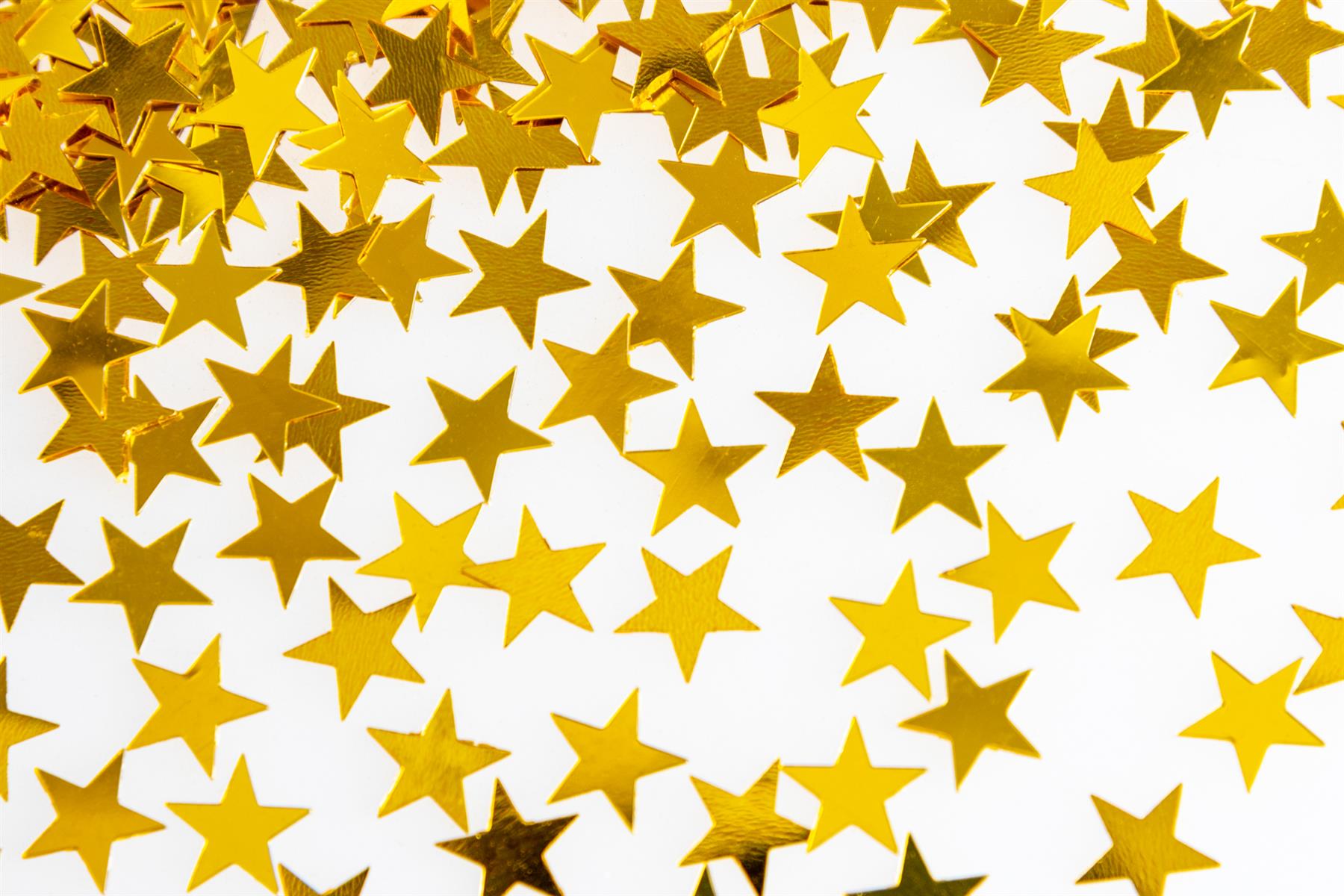 - Gold stars table confetti - sold single pack. Weight: 14 grams.