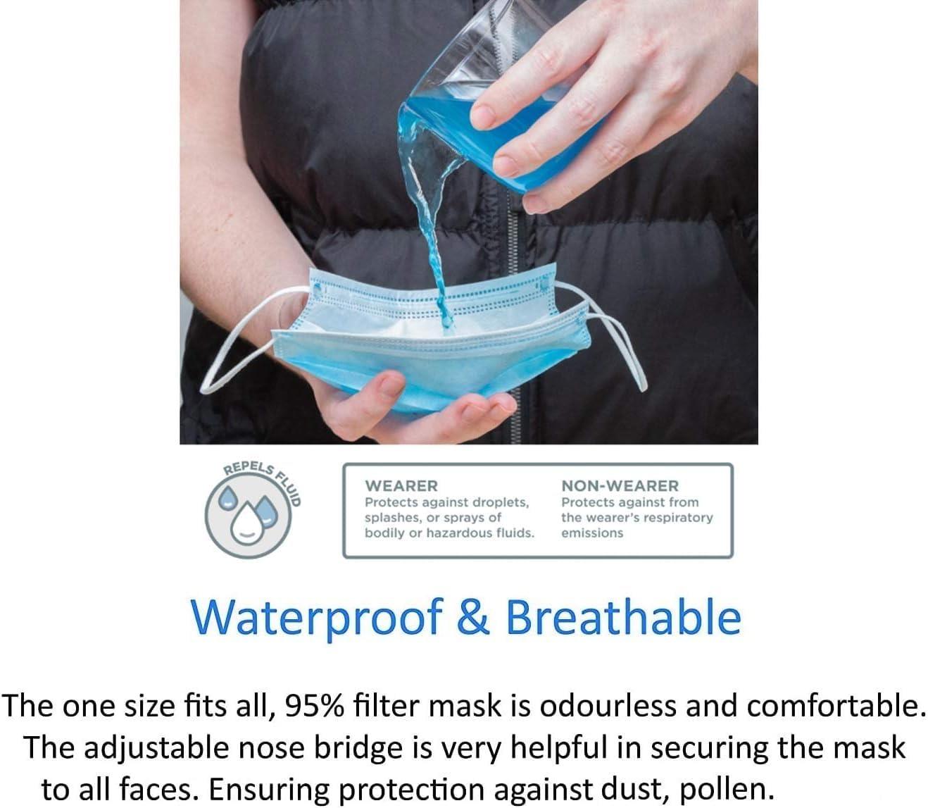 - A 3-ply high-quality disposable facial mask provides an additional level of protection through high bacterial filtration and fluid dismay.