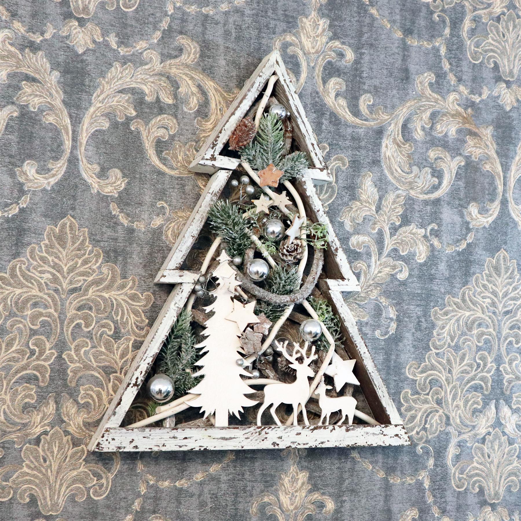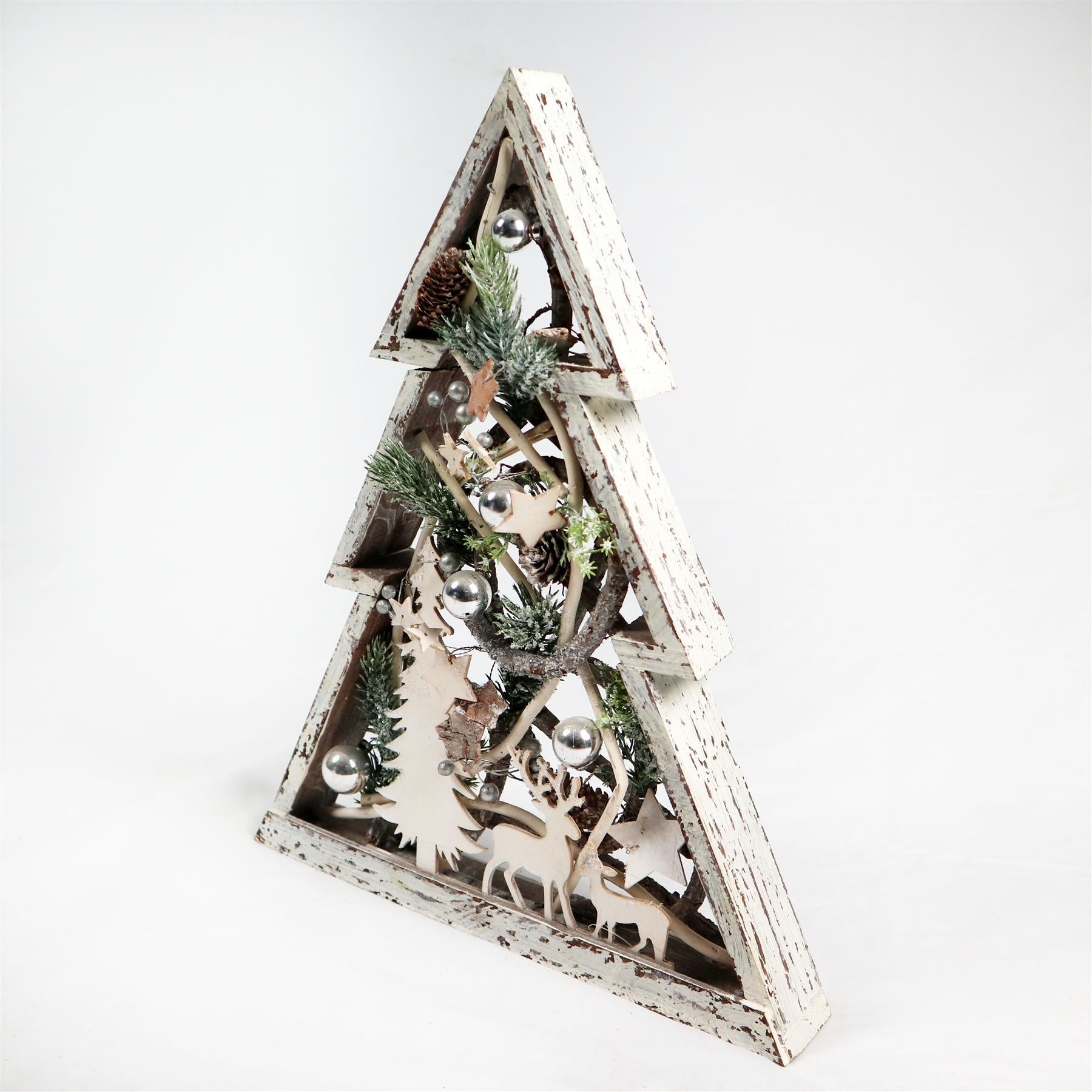 - The Centre of the frame has a wooden tree and reindeer as well.