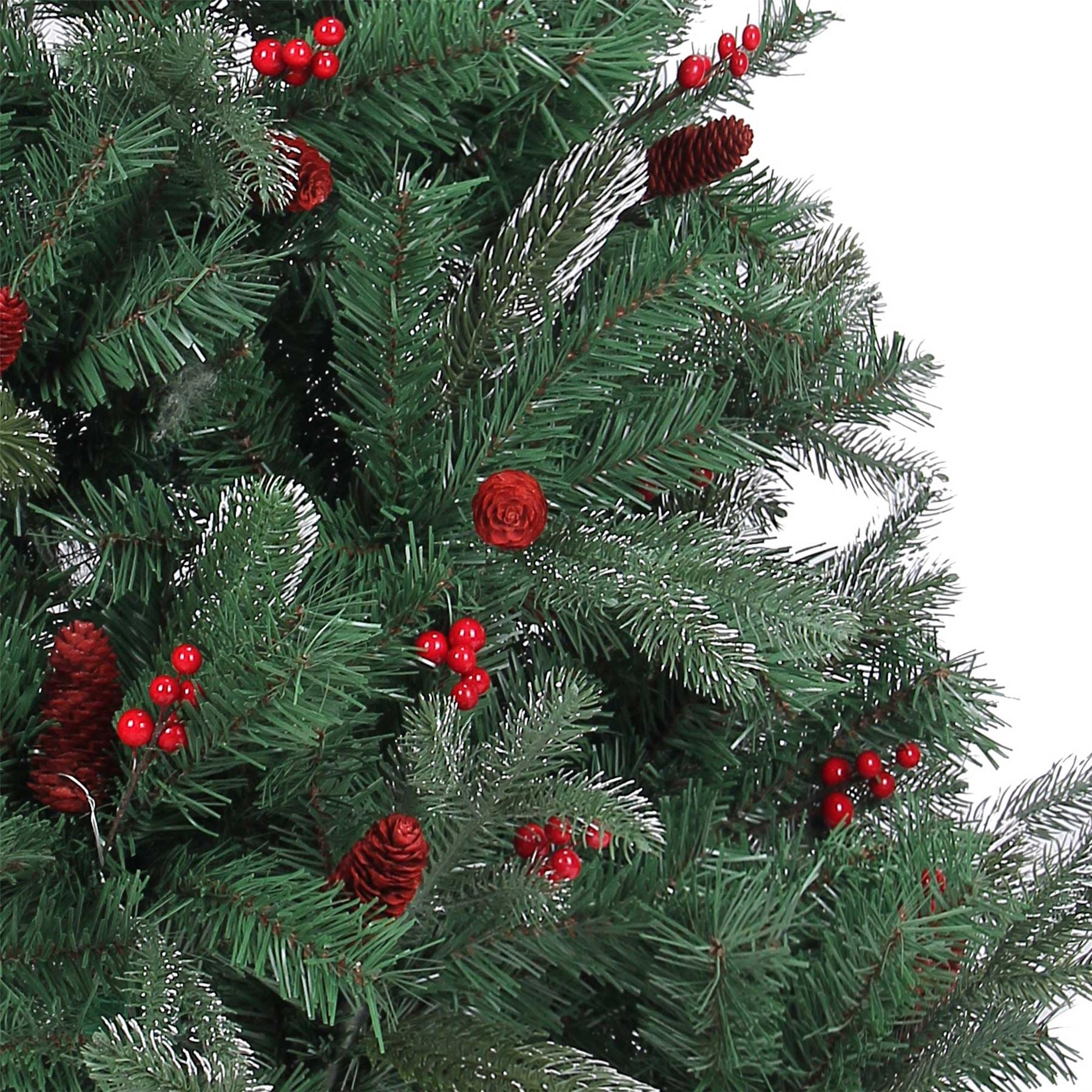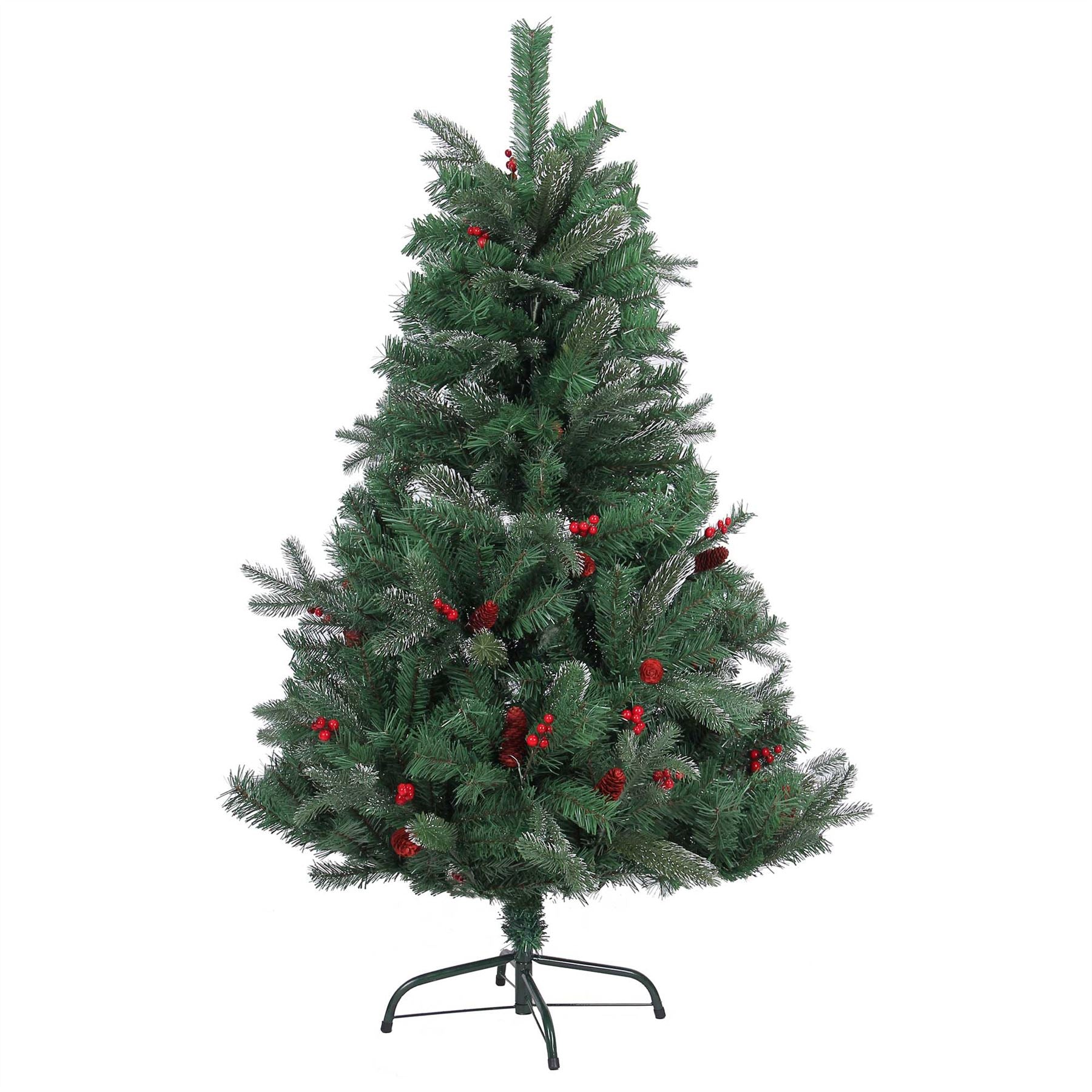- PRODUCT DESCRIPTION Natural looking artificial Christmas tree with frosted tips, red pine cones, and red berries For indoor use only Include green metal stand, easy-to-assemble Flame retardant