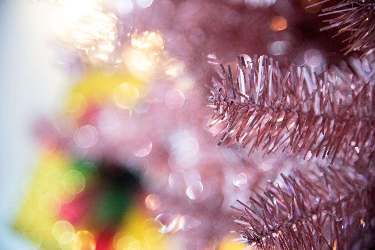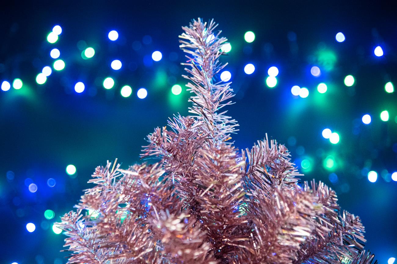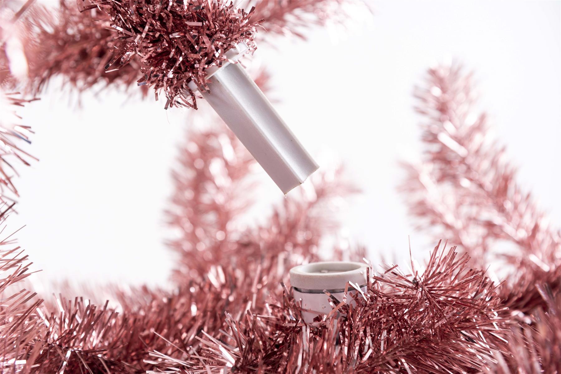 - This Christmas try our unique rose gold colour Christmas tree to be an immediate eye-catcher in any setting, with a shiny pink tinsel design that breaks free from the traditional tree.