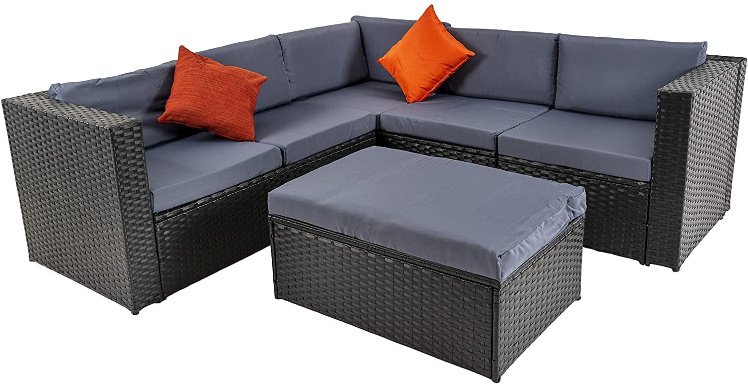 - Patio wicker corner sofa sets include 1 five-seater sofa and 1 rattan table.