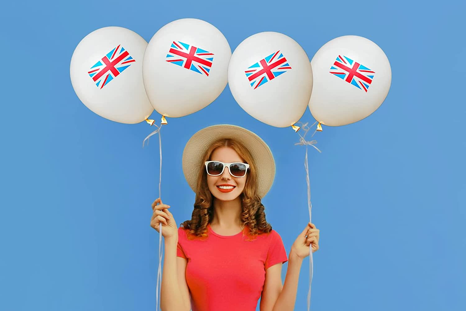 - High-quality Biodegradable latex material. Can be used to fill by Air or Helium Union Jack England National Flag Printed on White Balloon UK St George Festival Party Decorations.