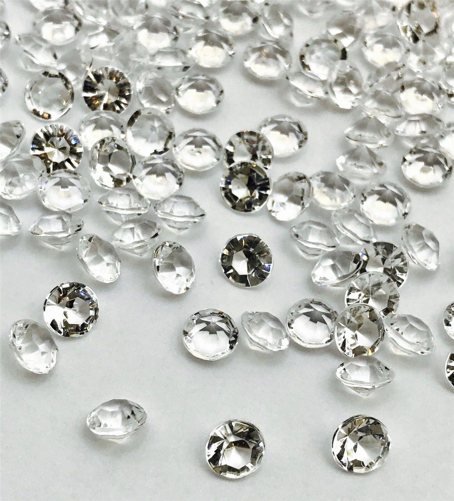 - Add sparkle and glamour to your wedding and party tables these acrylic diamonds have a rose multi-faceted top (Swarovski style) and Chaton back (pointed) to ensure the light reflects through them beautifully. This is a 112G pack containing approx. 5000 4.5mm (1/3 carat size) diamonds (usually a few more) These are 4.5mm at the widest point. See the size guide picture for size.
