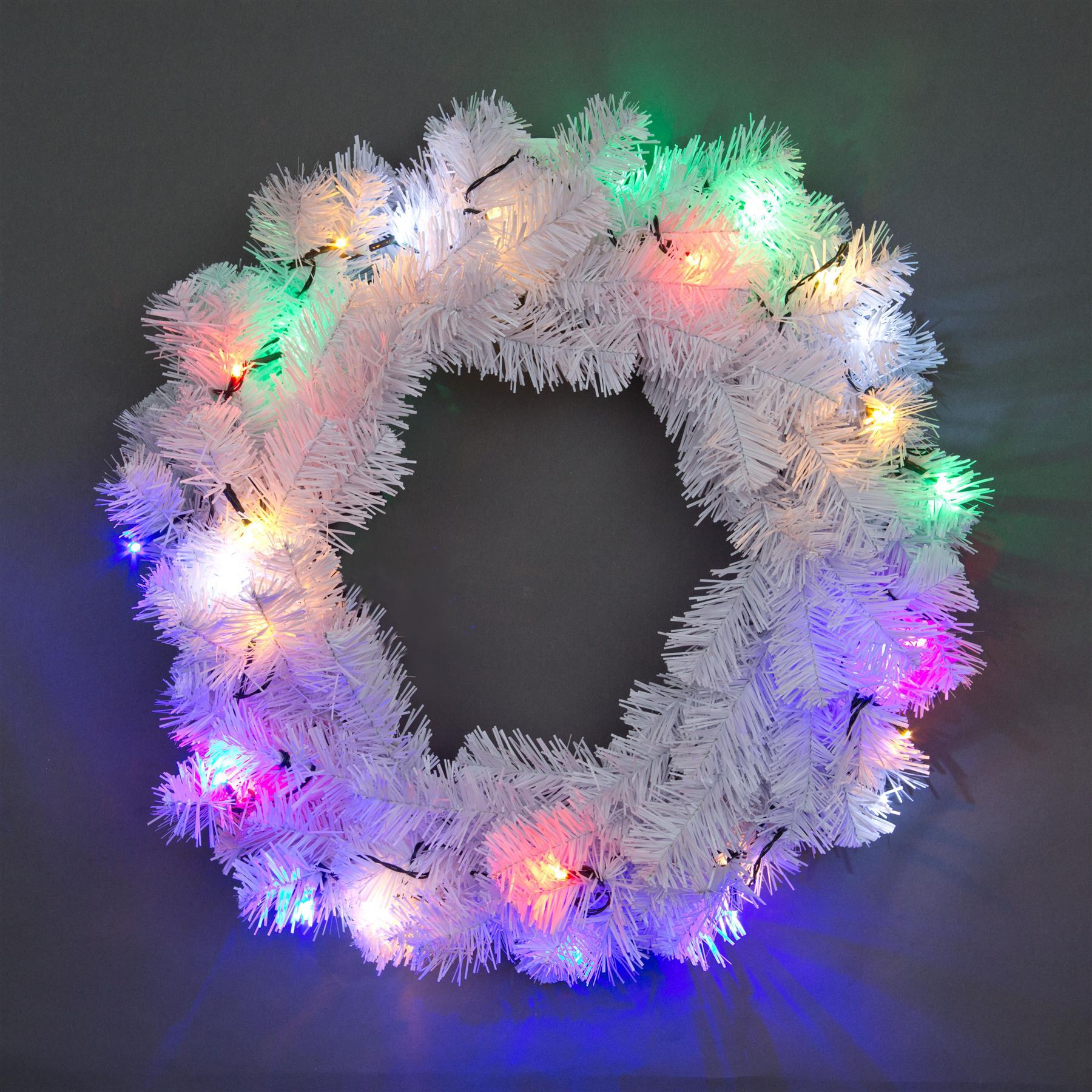 55cm Pre-Lit White Wreath with Multicolor LEDs