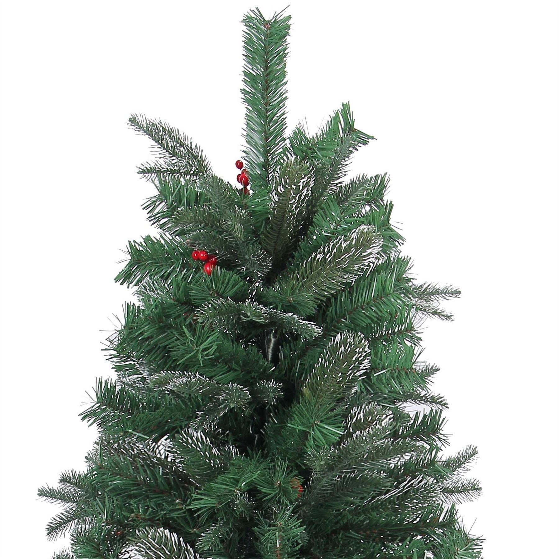 - PRODUCT DESCRIPTION Natural looking artificial Christmas tree with frosted tips, red pine cones, and red berries For indoor use only Include green metal stand, easy to assemble Flame retardant Product Code: SH-6071 Size:5ft (150cm) Main Colour: Green Order Quantity: 1 pcs BOX CONTAINS Christmas tree, metal stand with keys