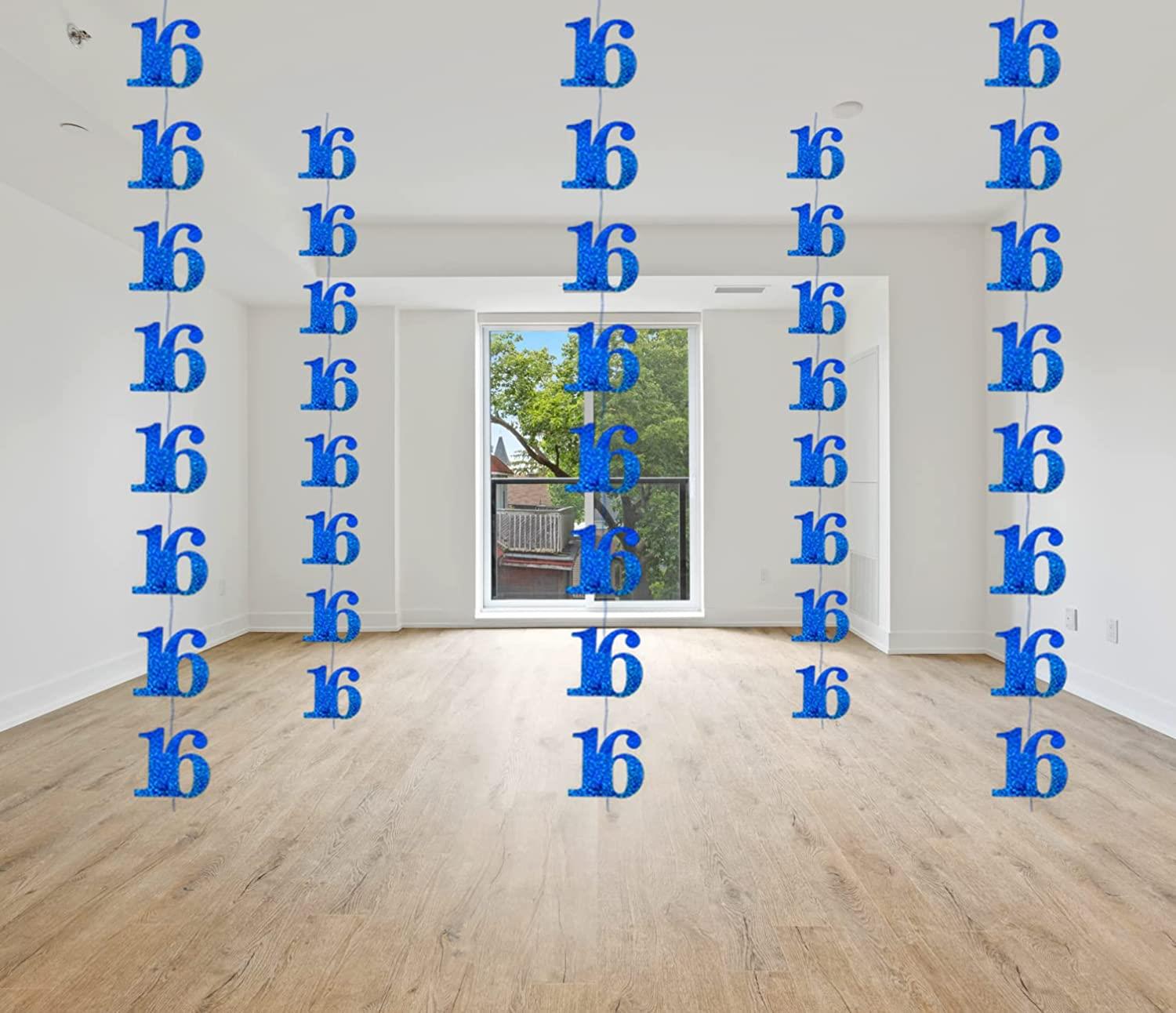 - BLUE Glitz Age 16th Birthday Prismatic Hanging Decoration Surprise your guest with these wonderful and colorful Hanging Decorations Pack Quantity: 6.