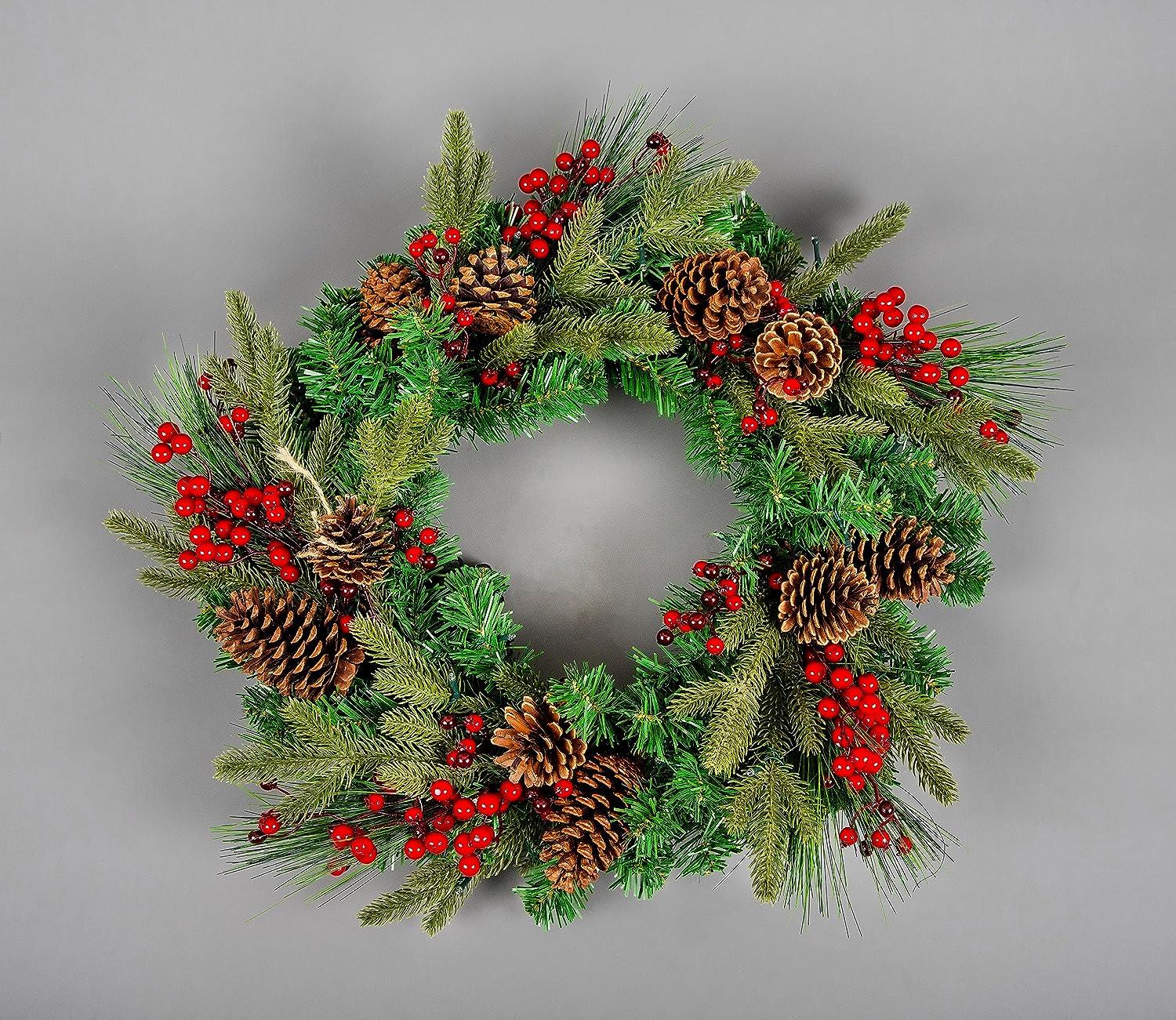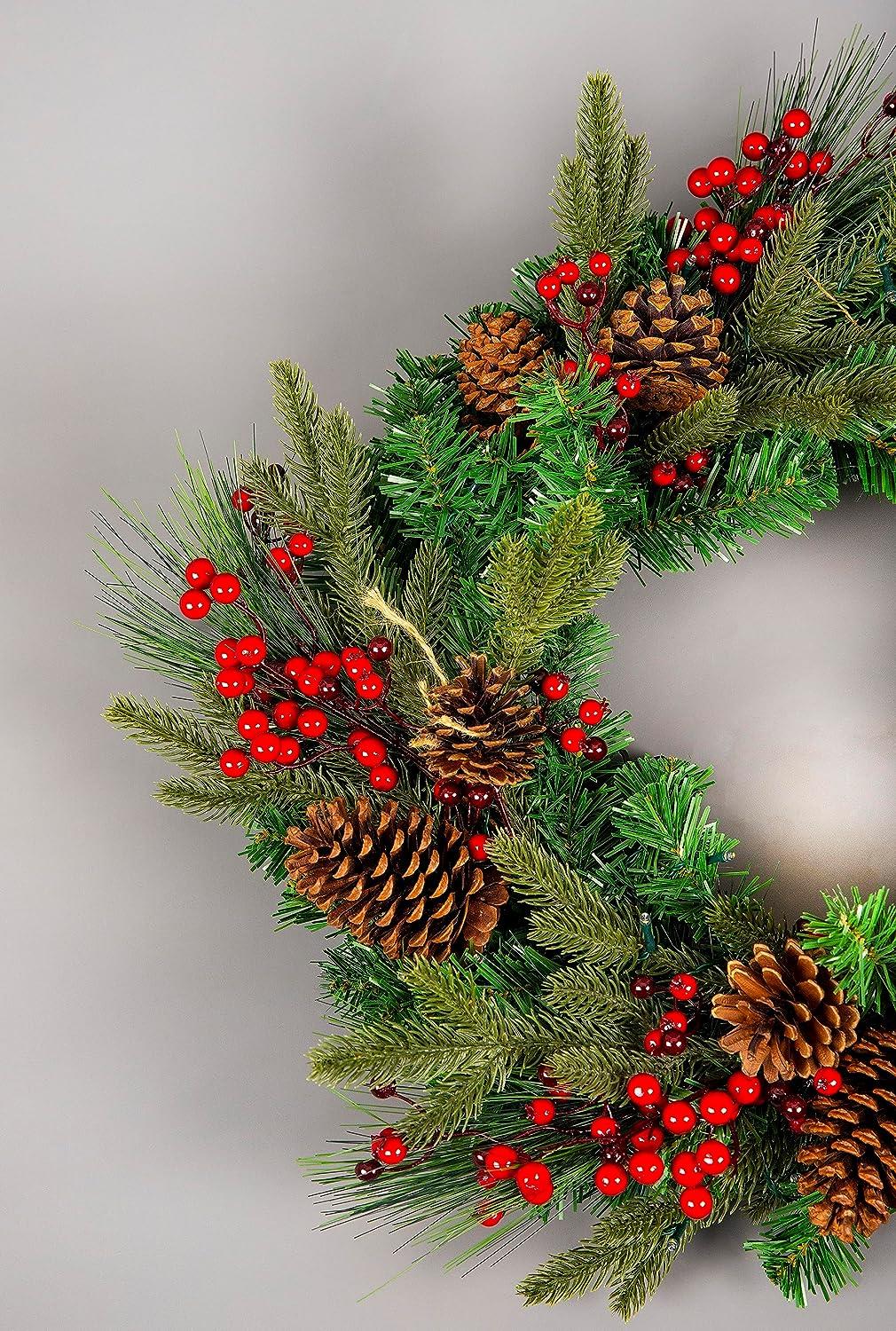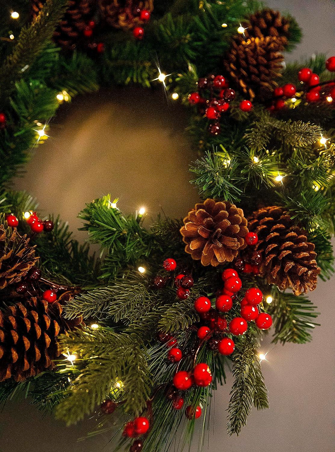 60cm Battery-Operated Pre-Lit Berry & Cone Wreath - 50 Warm White LEDs