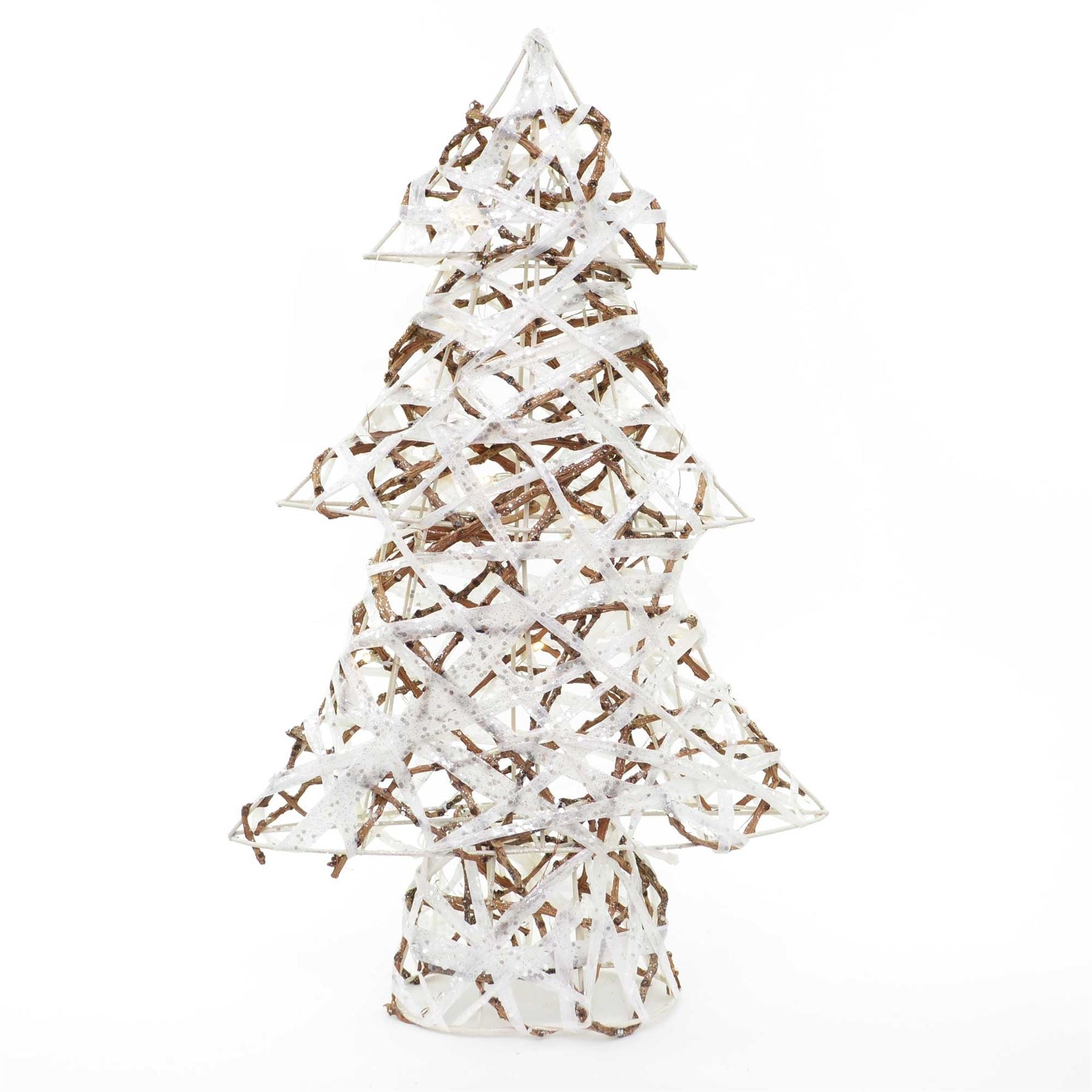- Size: 38x11x61H CM, Shape: Christmas Tree, LED Counts: 12 Warm White LEDs, Material: Twig Rattan, Order Quantity: 1 x Wired Frame Tree.