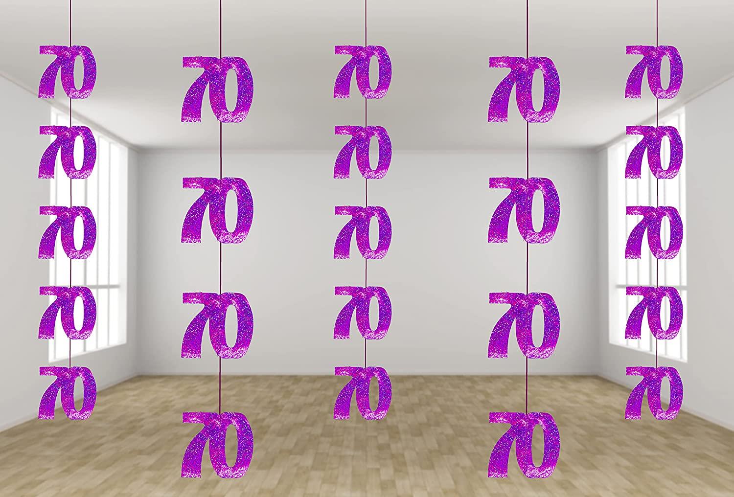 - PINK Glitz Age 70th Birthday Prismatic Hanging Decoration Surprise your guest with these wonderful and colorful Hanging Decorations Pack Quantity: 6.