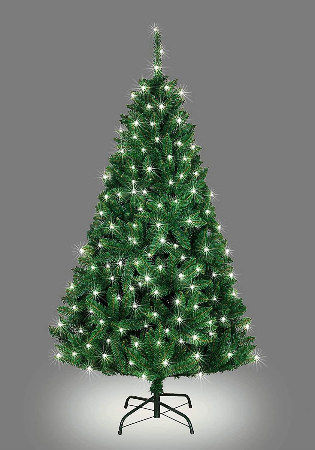 - LEDs: There are 8 modes for selection including waves, sequential, slogs, chasing/flash, slow fade, twinkle/flash, steady on, and combination. Size: 7ft(210cm), Approx. Width: 130cm, Material: PVC/Metal, Tips: 1084, Colour: Green, Construction: Hinged, LEDs: 300(White), Order Quantity: 1 Pc (Comes with Metal Stand)