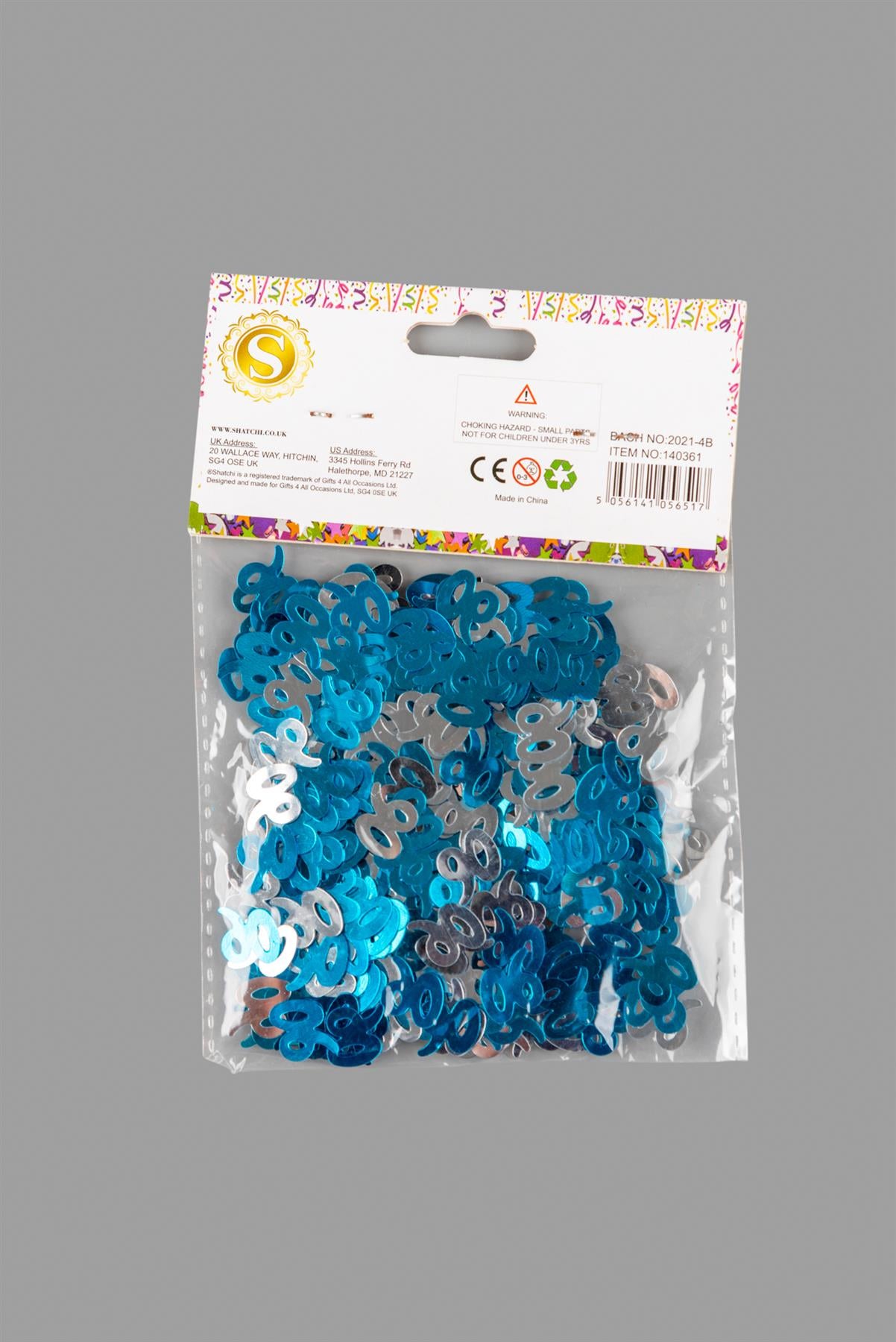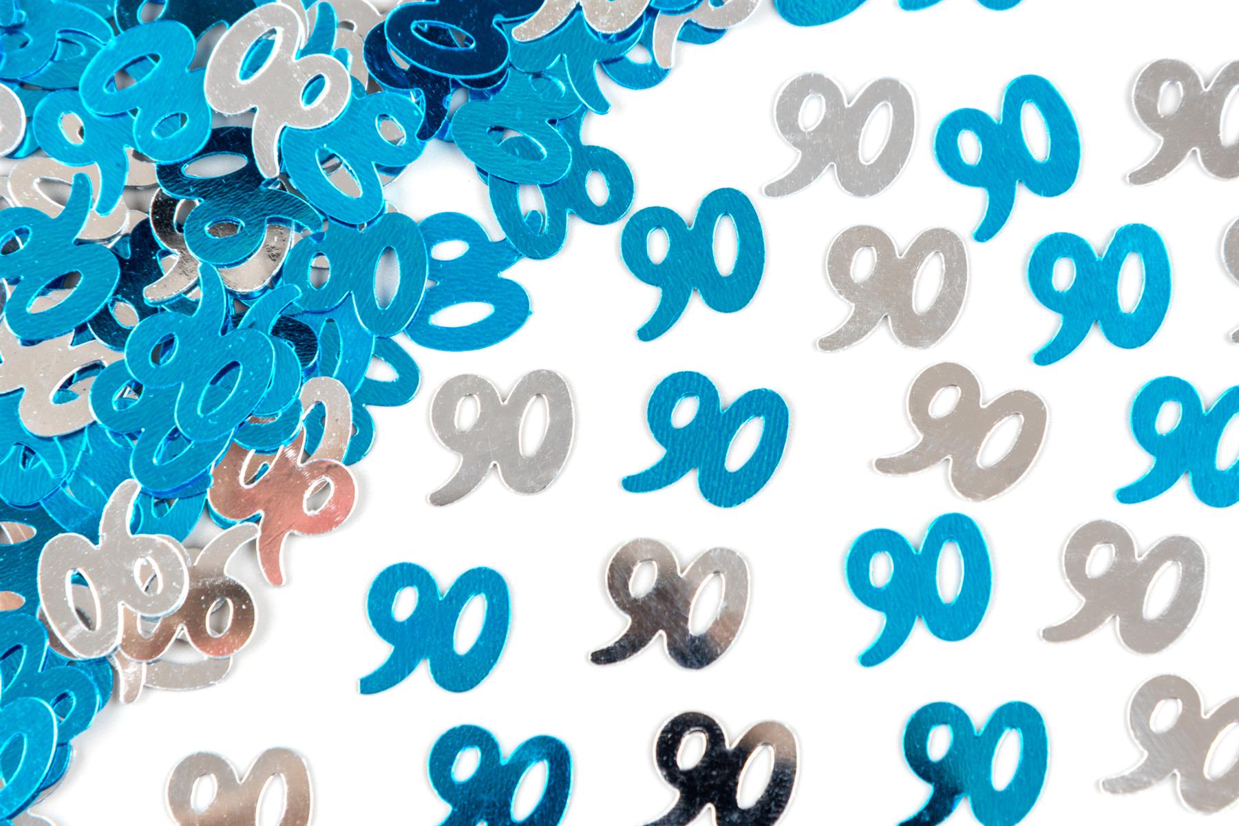 90th Birthday Confetti Blue & Silver 14G 1PK