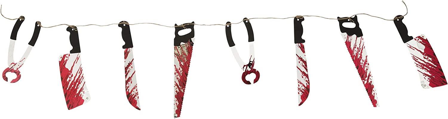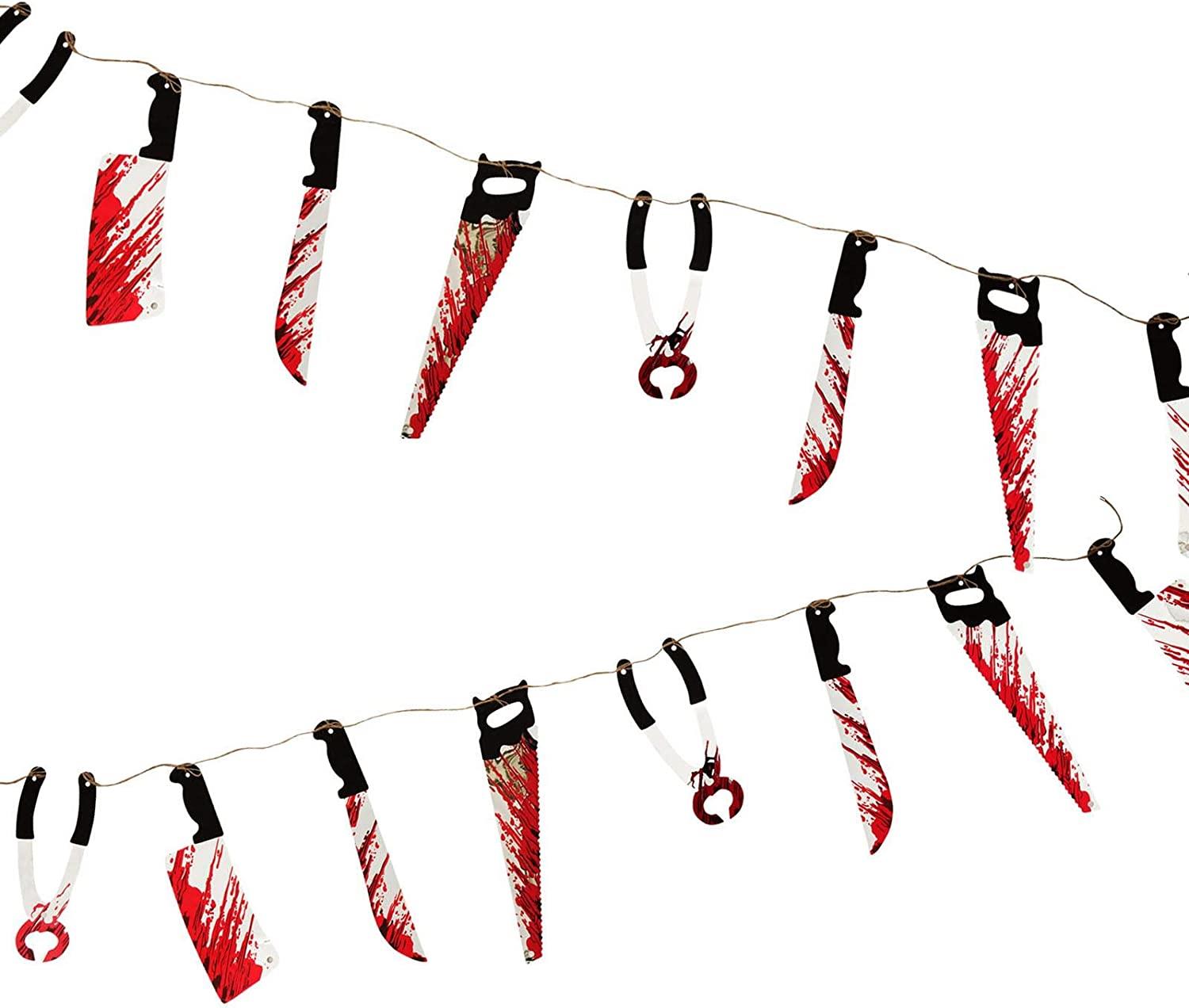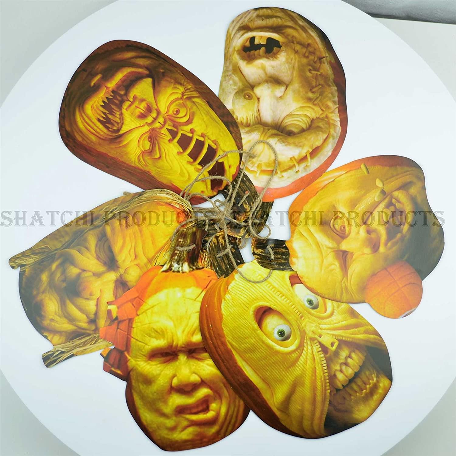 - Set Includes 8FT Bloody Weapons Bunting, 8FT Bloody Heads Bunting, and 12FT Scary Pumpkin Face Bunting Material: Halloween banners are made from high-quality cardstock, durable, and not easily damaged.