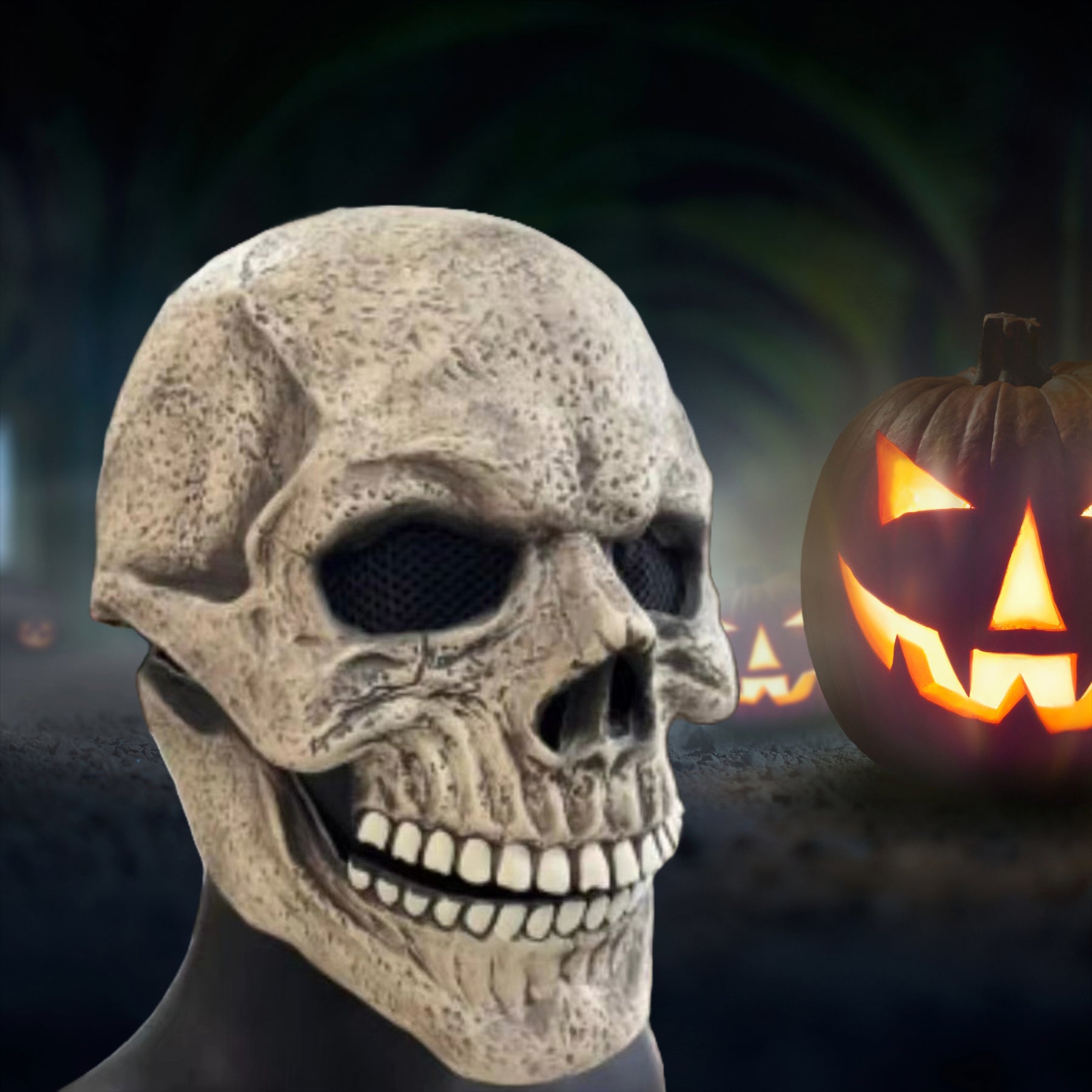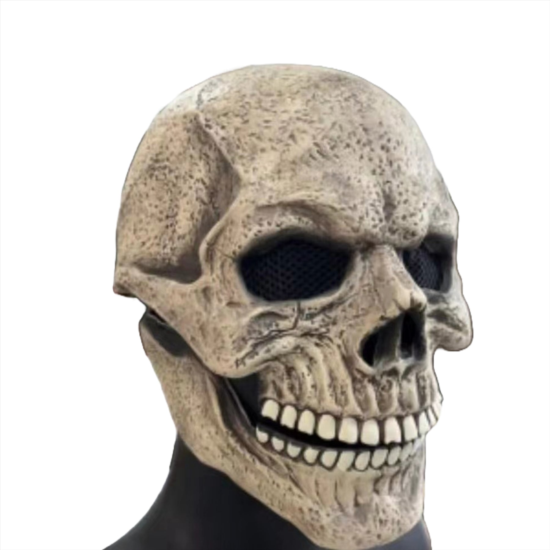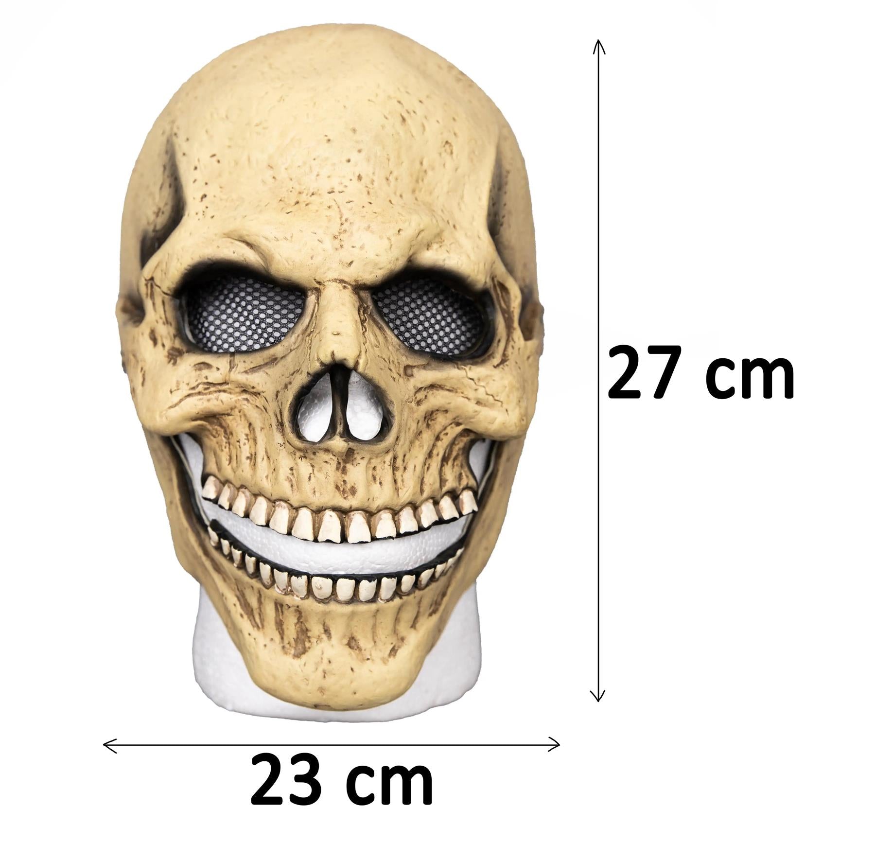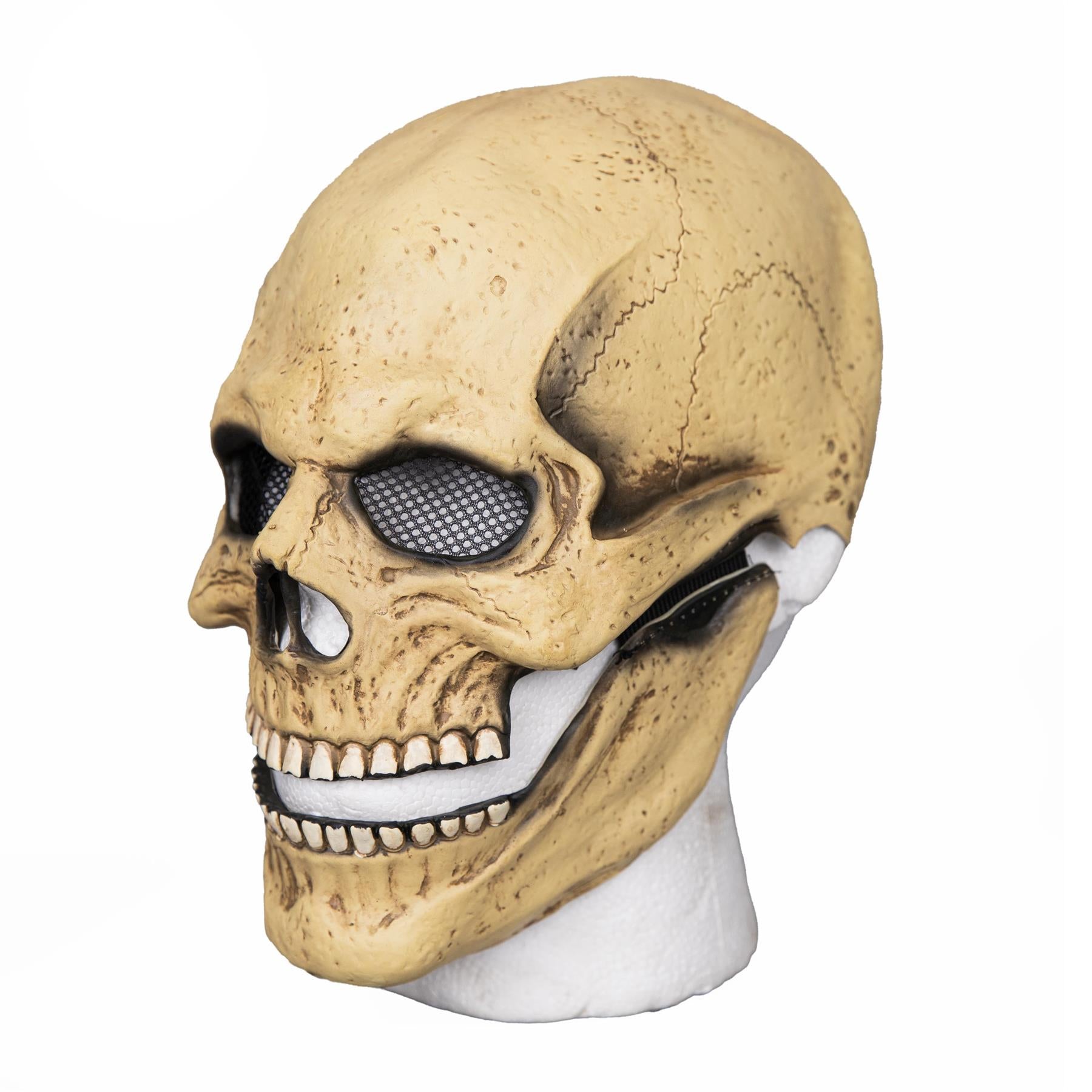 - Roomy enough to fit any child or adult. You can see through the eyes. This skull mask has with movable creepy jaw design.