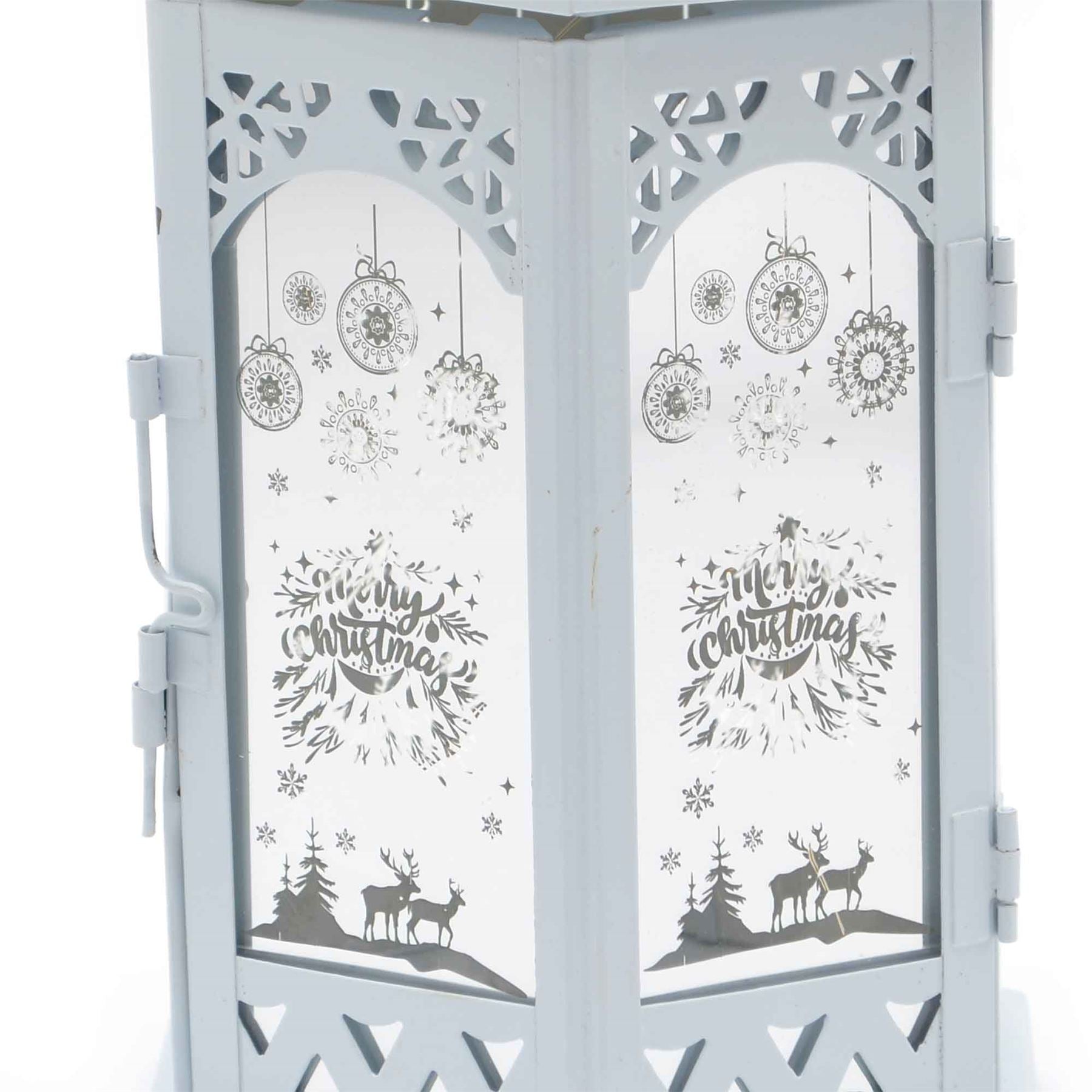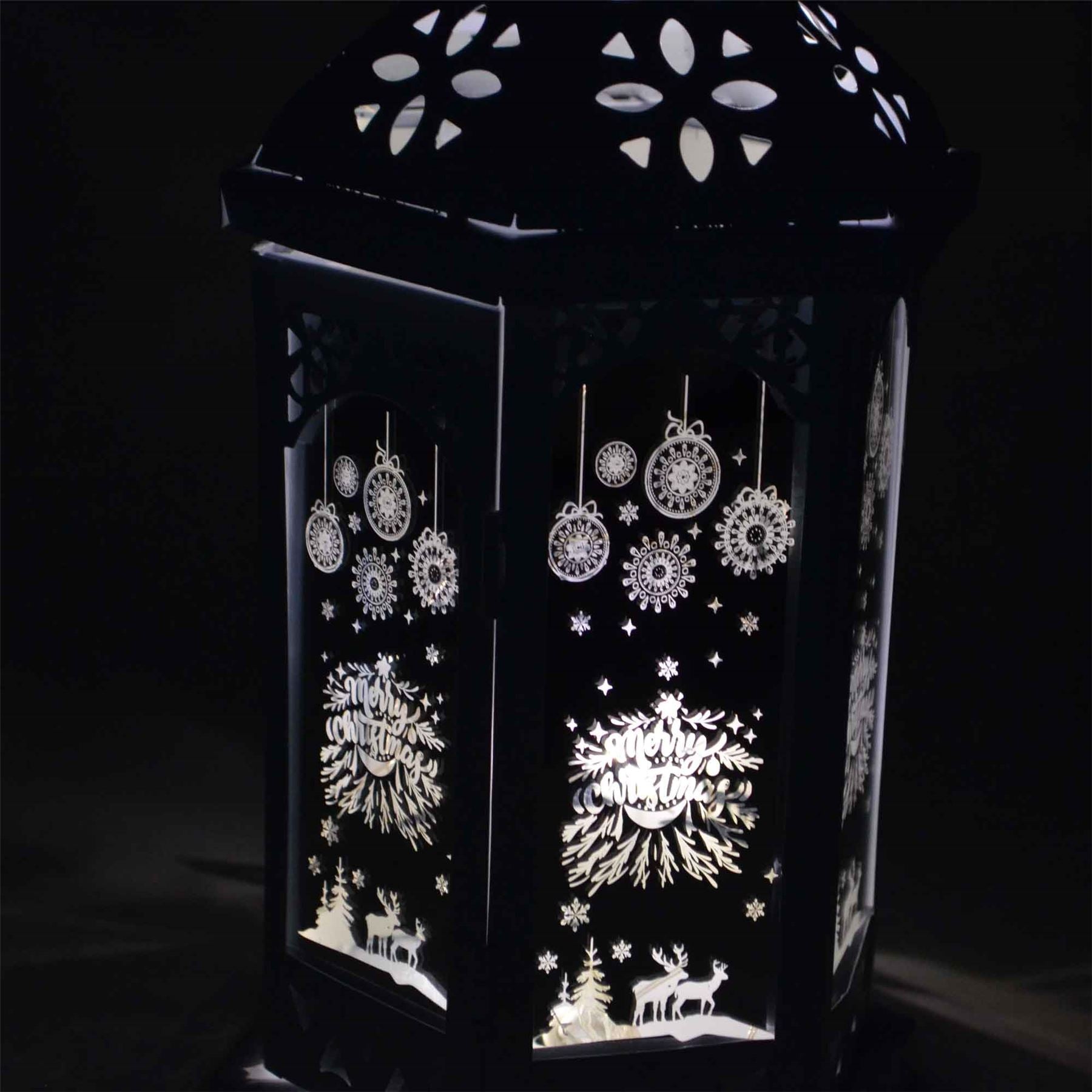 - This metal lantern with old contemporary design and a Merry Christmas and Christmas theme printed on glass Ideal for Christmas theme decorations, home indoor party decorations made from quality metal and PVC material.