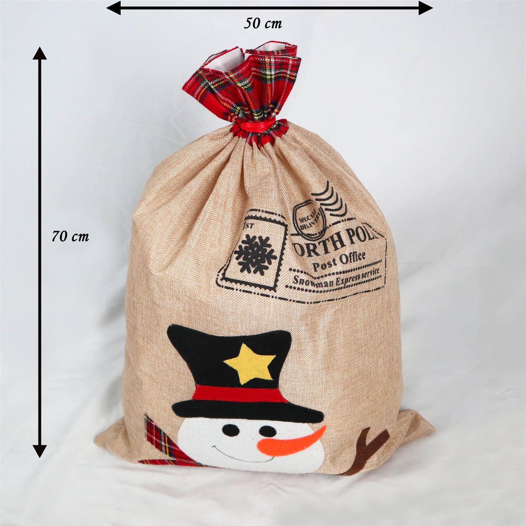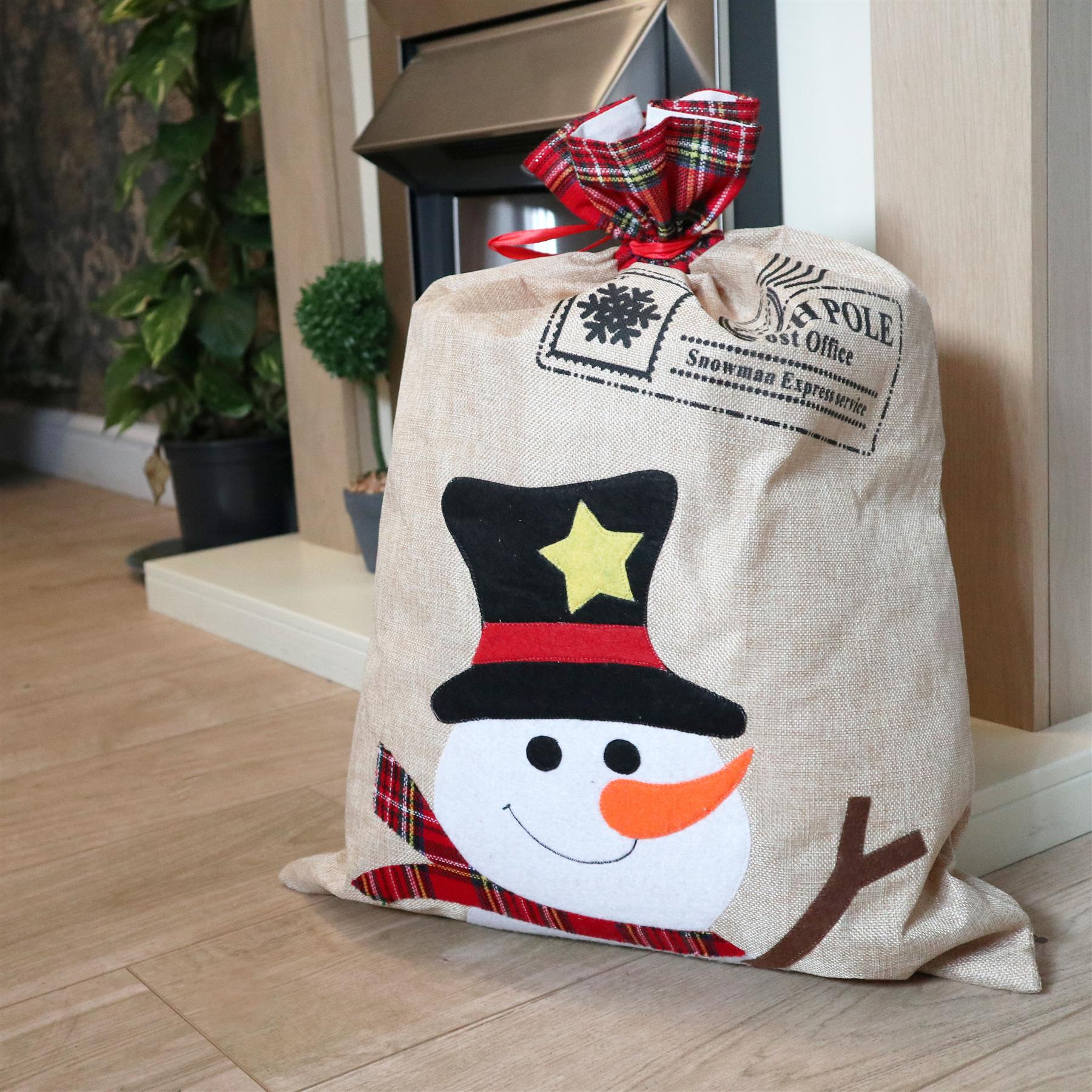 - large deep snowman sack - made of high-quality thick material with a unique snowman-themed front.