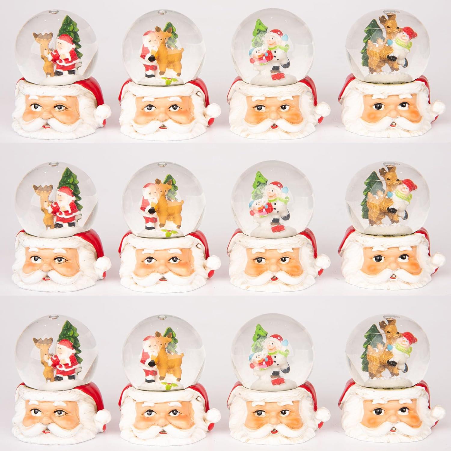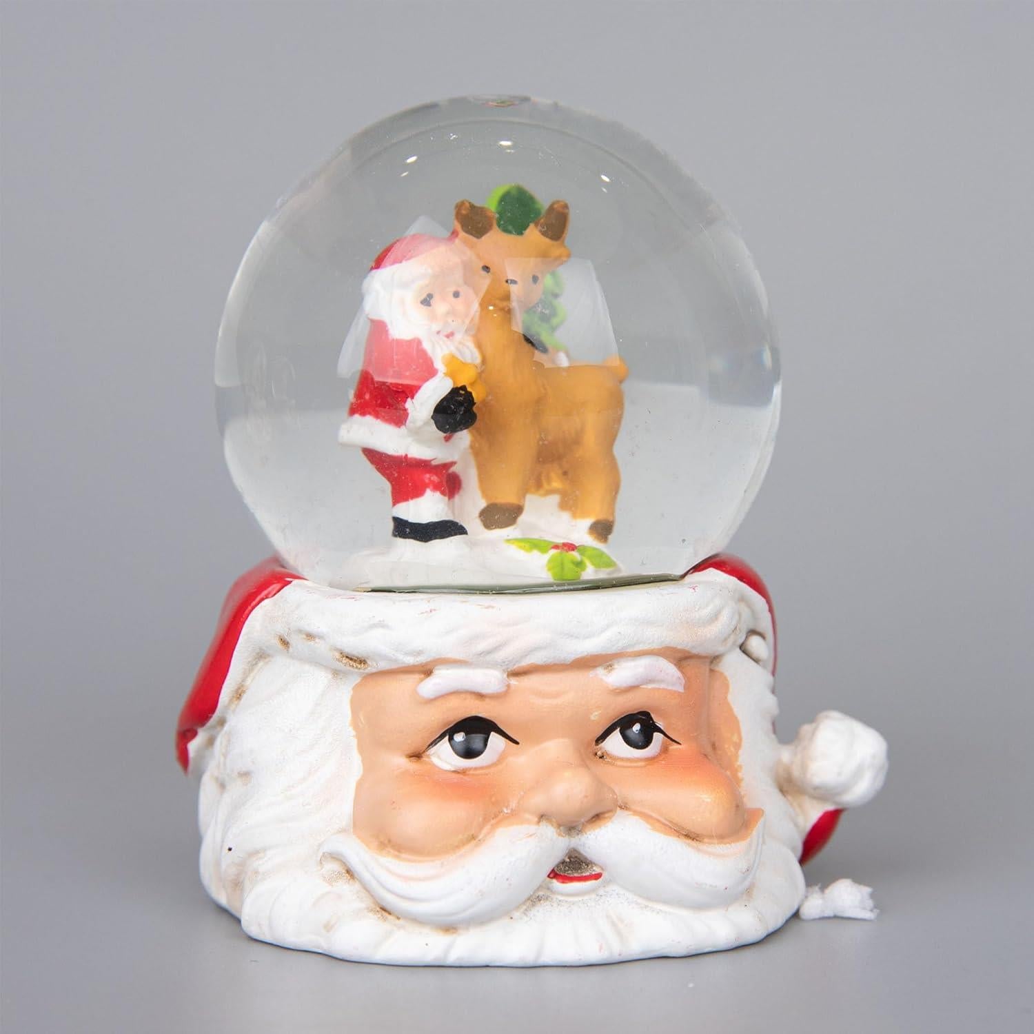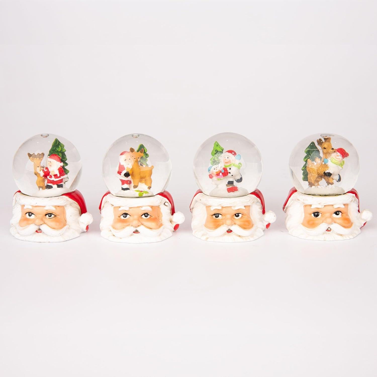 - Celebrate a traditional Christmas with our glass snow globe featuring traditional Xmas scenes from Santa Reindeer/Snowman Reindeer/Snowman in a quality glass snow globe on a unique resin base.