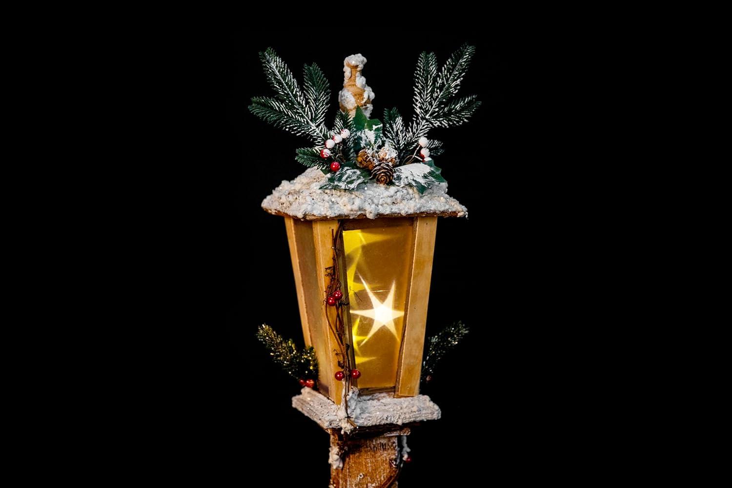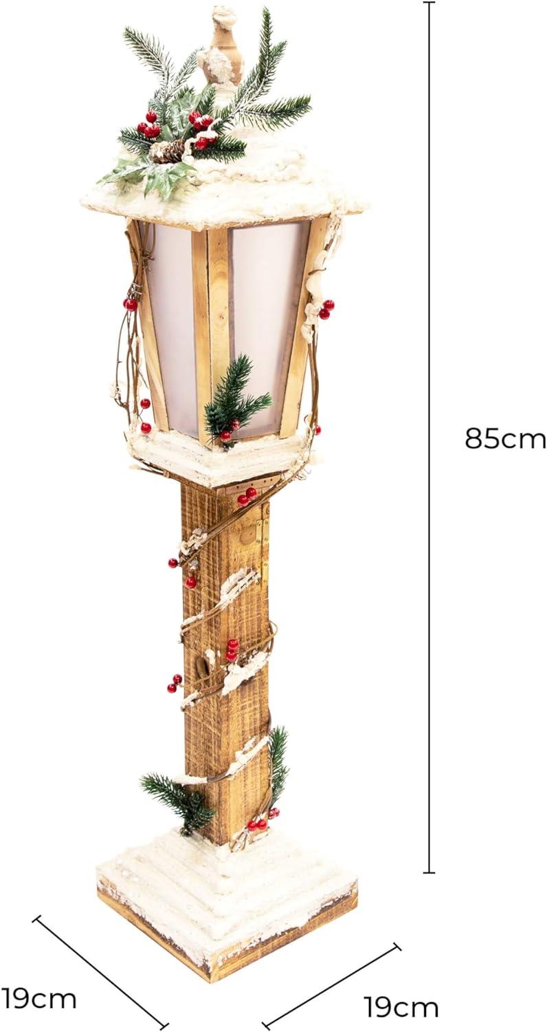 - [SNOW COVERED]: This fantastic wooden snow-covered lamppost is the perfect Christmas ornament that will not only look great but will also bring some decorative illumination into your home this festive season.