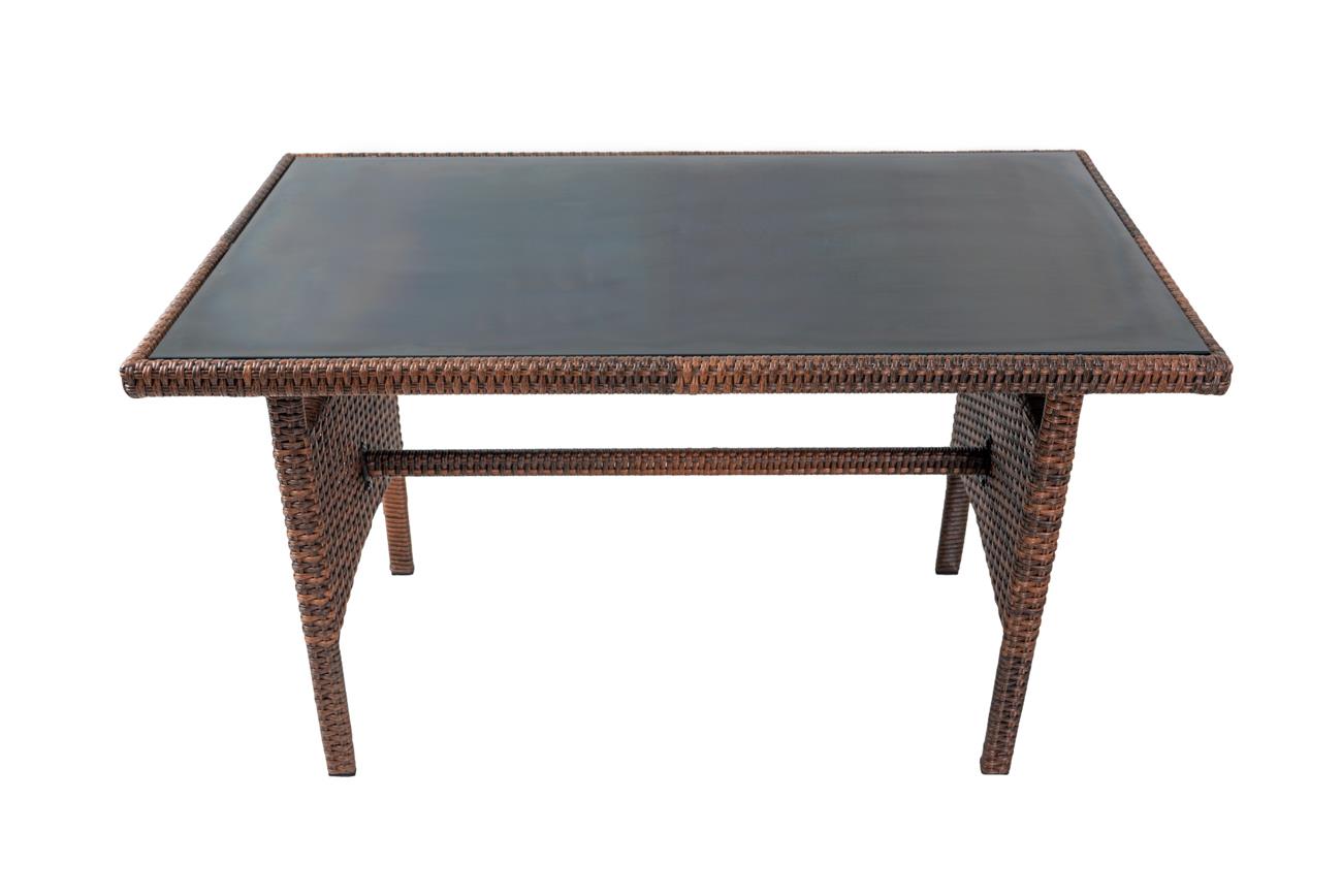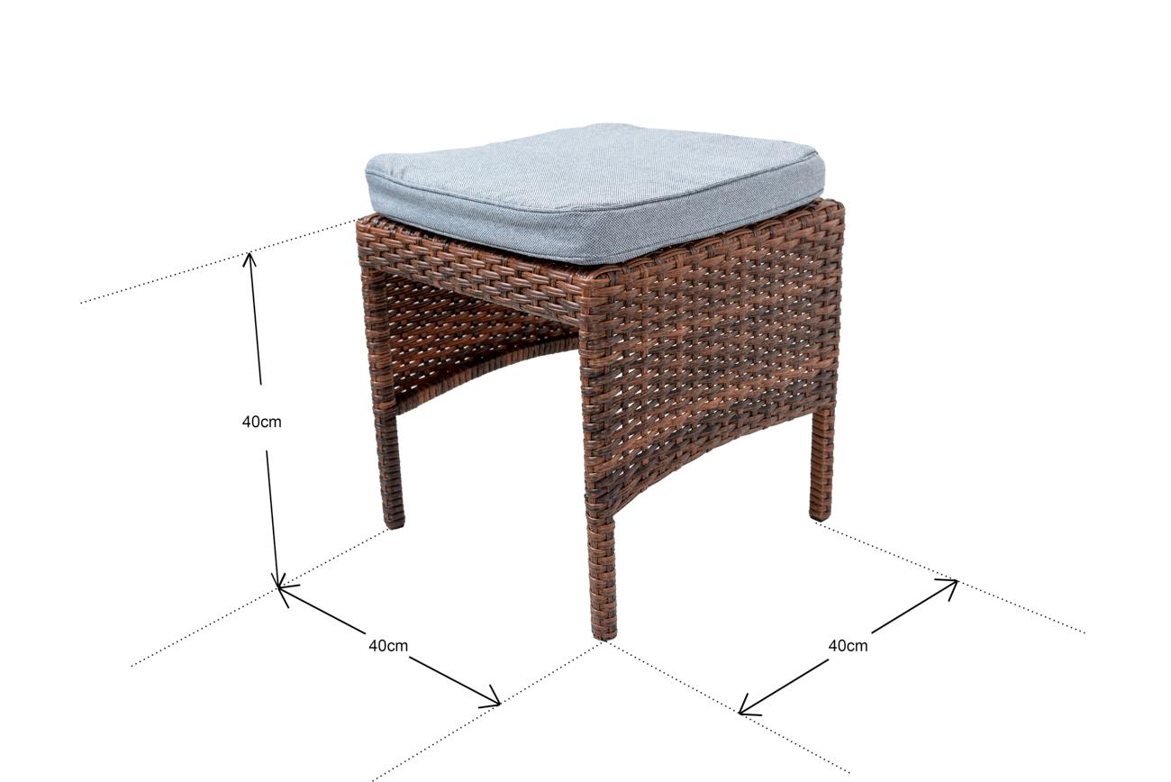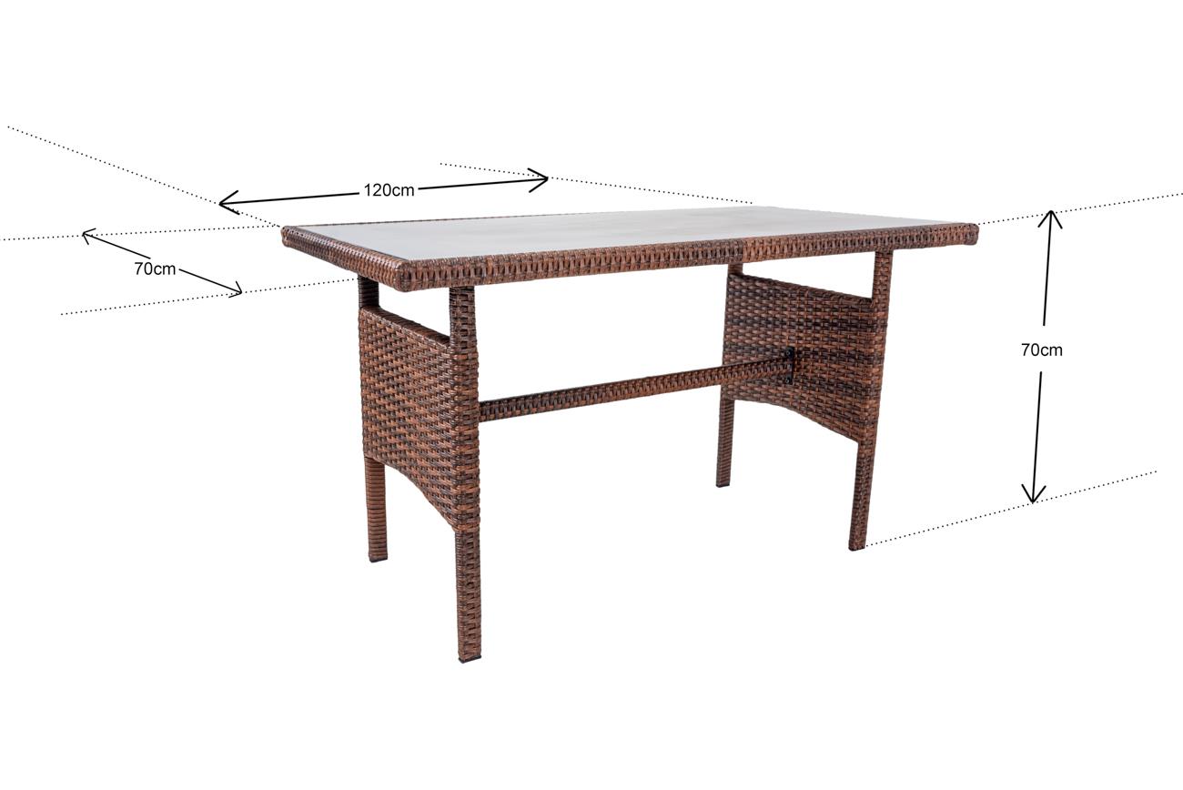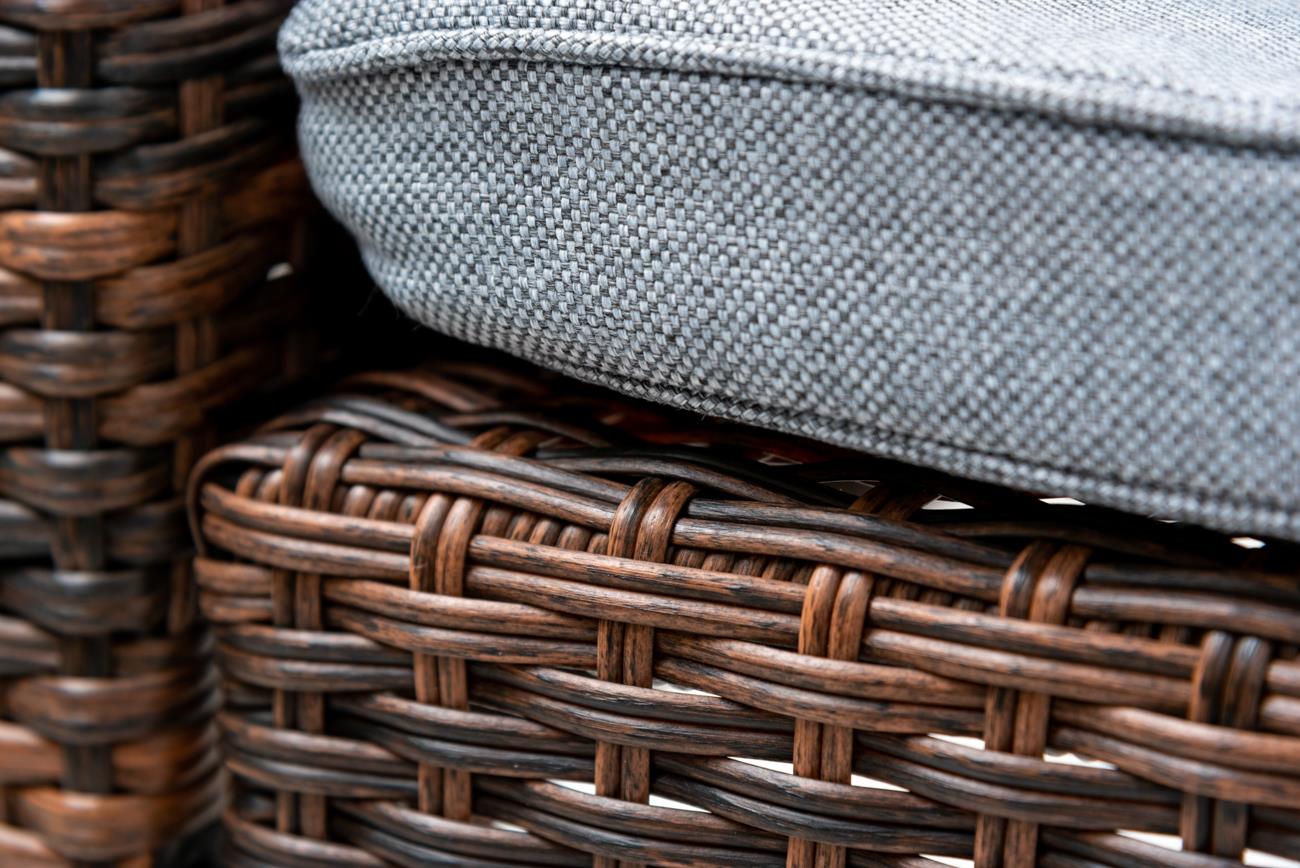 - The Set has dark brown color rattan material, 5mm toughened glass on top of the table, and light grey cushions covering on sofa and chair.