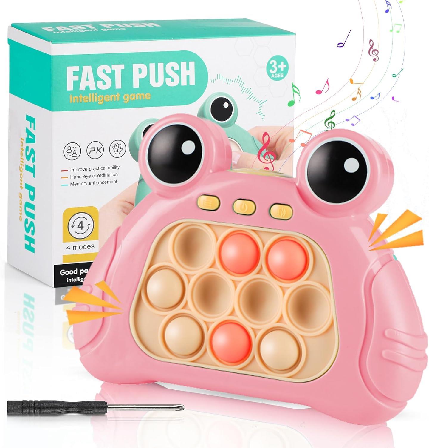 - Suitable for gift giving: Pop Quick Push game console makes an excellent gift for kids or adults of all ages and is a great addition to any toy collection, its colorful design and interactive games keep your kids entertained, reusable, and easy to clean, one console is included in the package you receive and Batteries are not included.