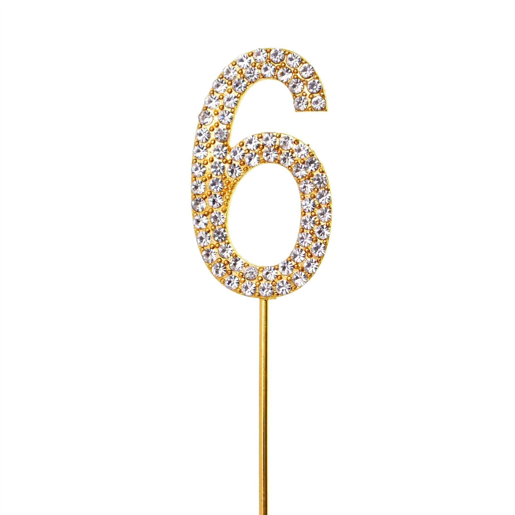 - A fun and stunning way to make your dessert floral arrangement or centerpiece stand out with a Beautiful cake topper full of rhinestones!